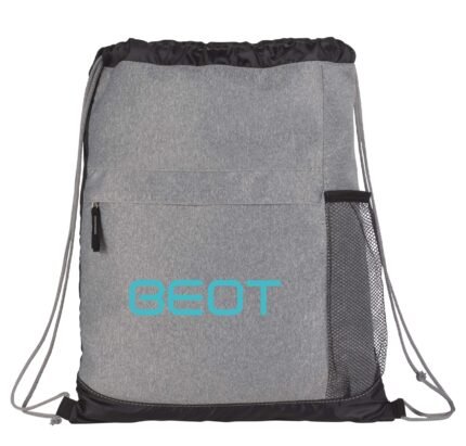 The Heather Melange Drawstring Bag is constructed from durable polyester materials and has a lightweight, portable design. It features a