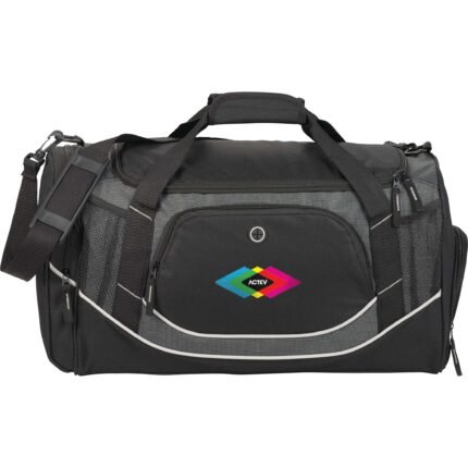 The Excel Sport Club Duffel Bag features a zippered main compartment with bottom board. This custom duffel