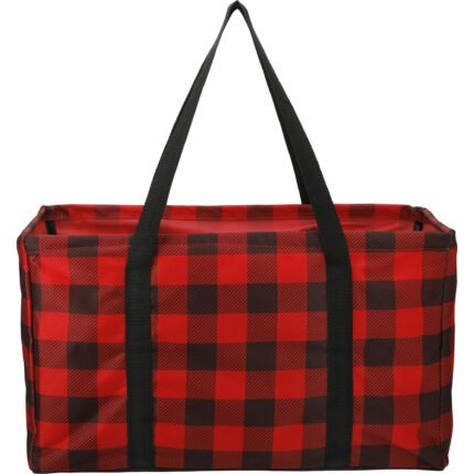 The Buffalo Plaid Utility Tote is perfect for all seasons. It features an on-trend buffalo plaid print and an open