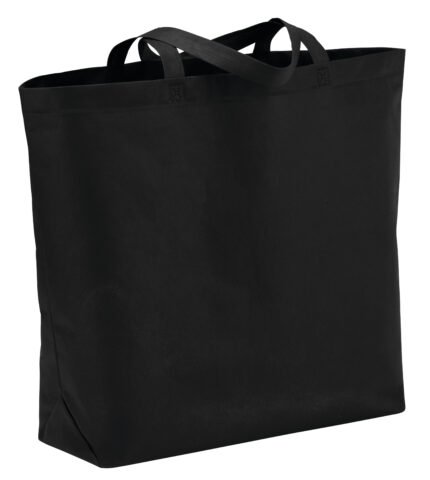 The Challenger Non-Woven Shopper Tote features a large open main compartment and heat-sealed construction. The tote has 10″ drop handles