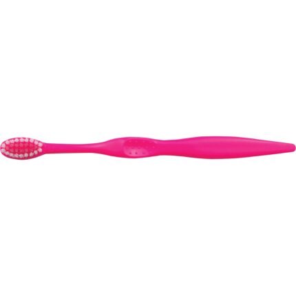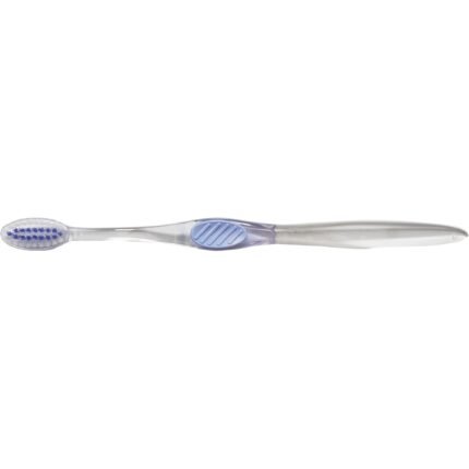 The Accent Toothbrush is a high-quality, clear-bodied, adult-sized toothbrush with soft bristles. It has matching inner bristles and grip colors.