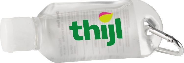 The Bullet 1.8oz Clip-N-Go Hand Sanitizer is an alcohol-based, 1.8-ounce hand sanitizer with a 62% alcohol content. It comes in a take-along bottle with a flip-top lid. The bottle features a metal mini-carabiner that matches the lid color. This product meets FDA requirements and is available for shipment within the United States (including Alaska, Hawaii & Puerto Rico). Not available for export. See General Information page for additional air shipment charges. Multi-color decoration available. Key Features Material: Plastic Contains 1.8oz of hand santizer Sanitizer engineered with 62% alcohol content Metal mini-carabiner included for convenient carrying Flip-top lid matches metal mini-carabiner Meets FDA requirements Multiple colors available
