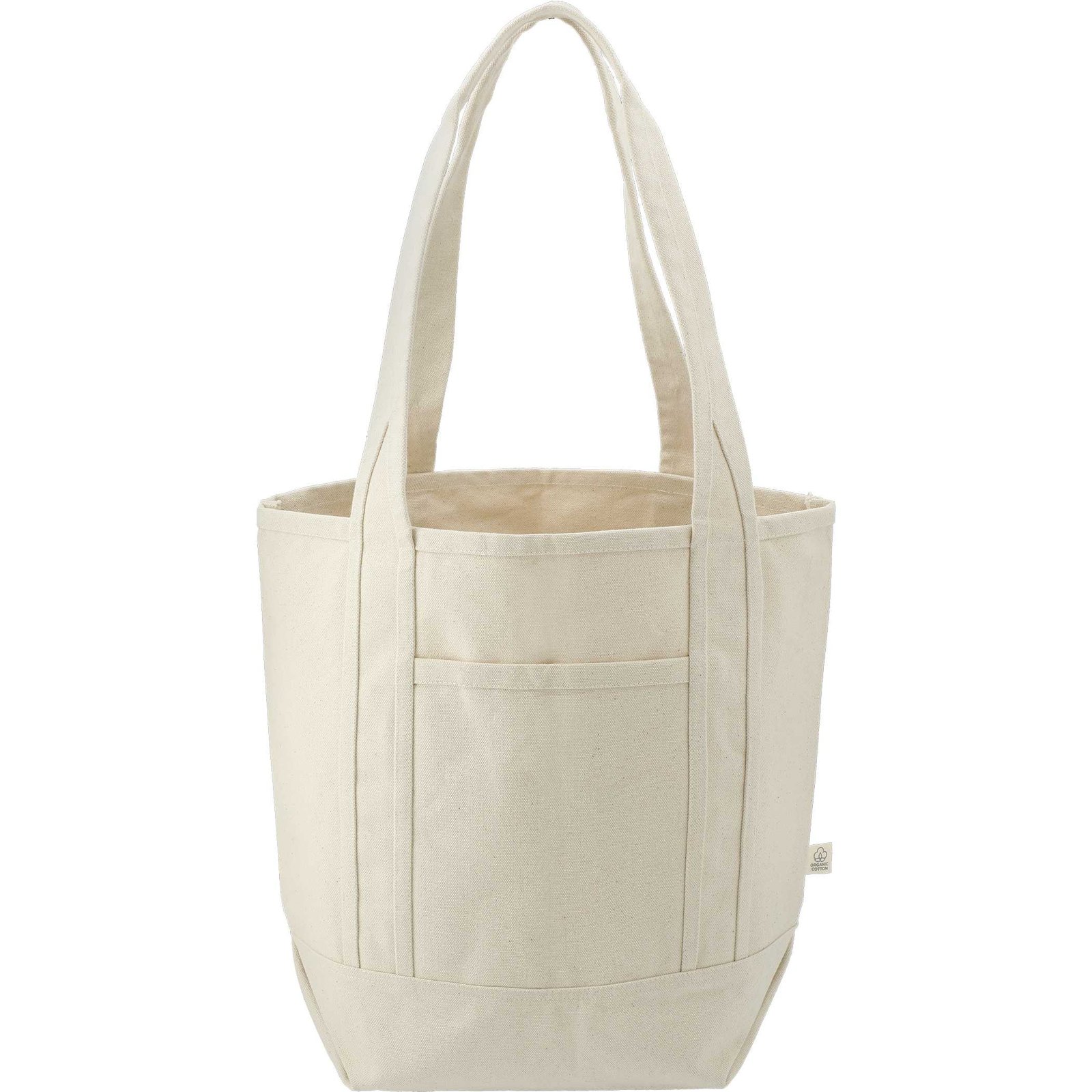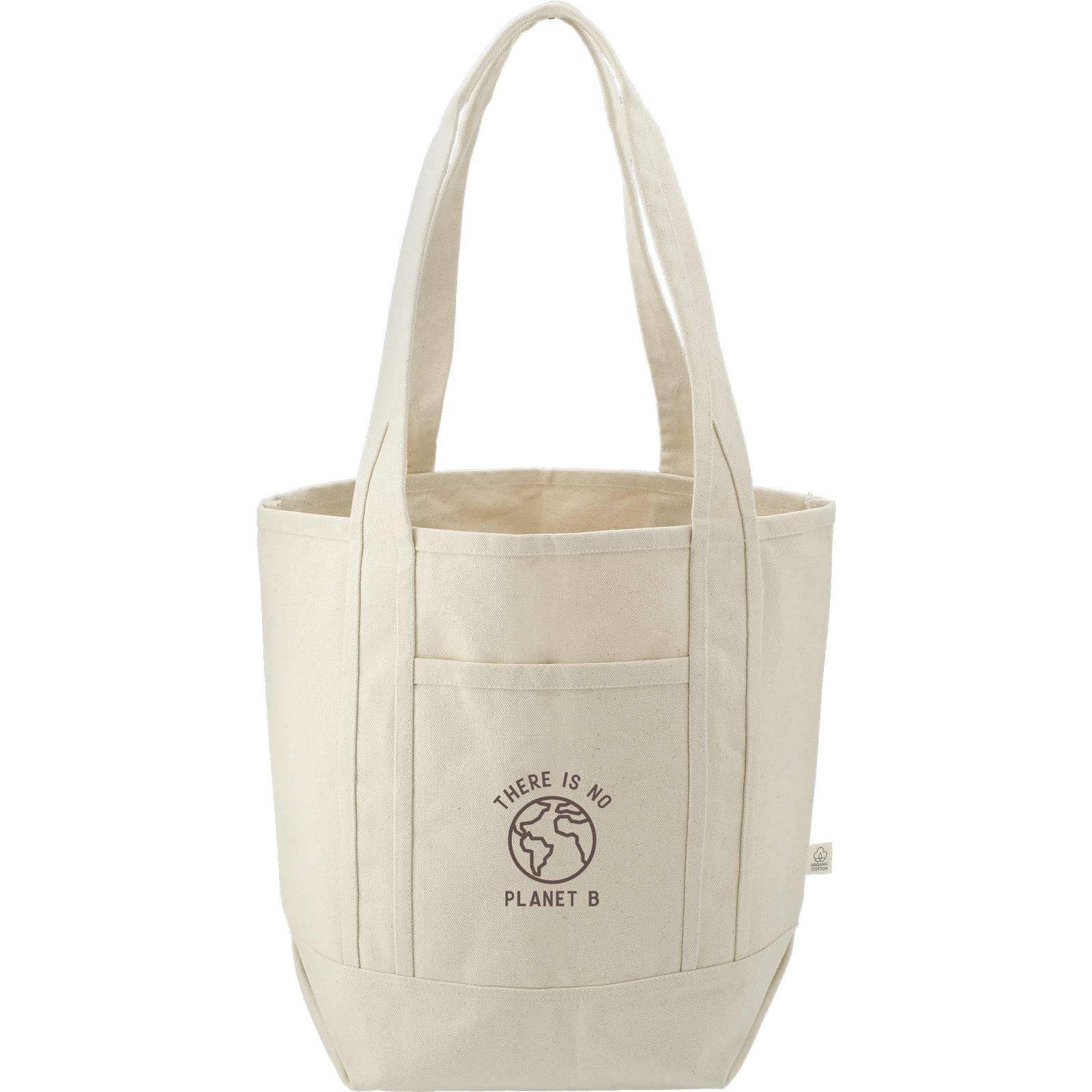 The Organic Cotton Tote is made from GOTS OE Cotton. This sustainable take on a classic style features a front slash pocket and double 12.5” drop handles. Through a partnership with 1% For The Planet, one percent of sales of all EcoSmart® products will be donated to environmental nonprofits. Key Features Material: GOTS OE Cotton. Open main compartment 12.5″ handle drop Front slash pocket Size: 15.00 H x 17.00 W x 7.00 D