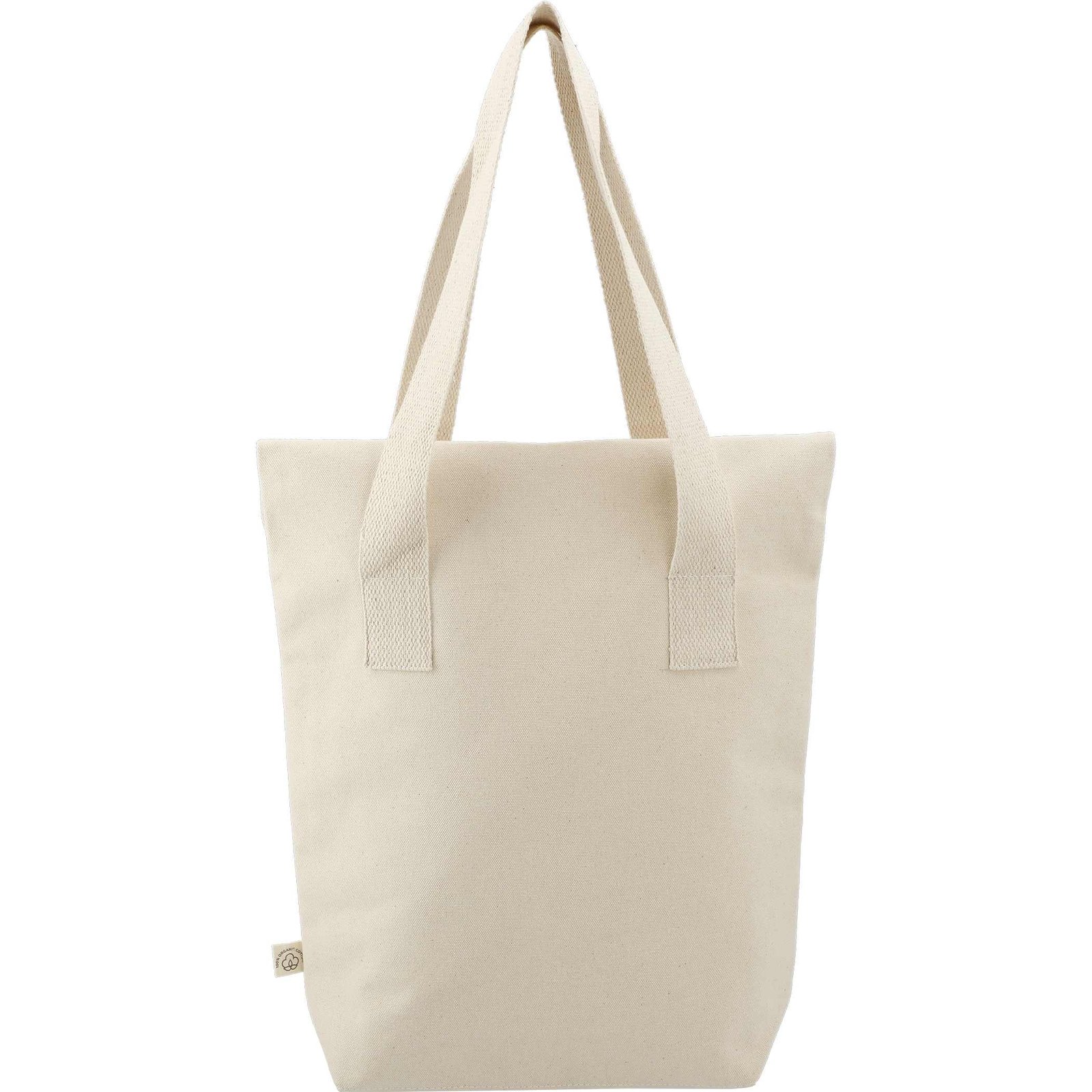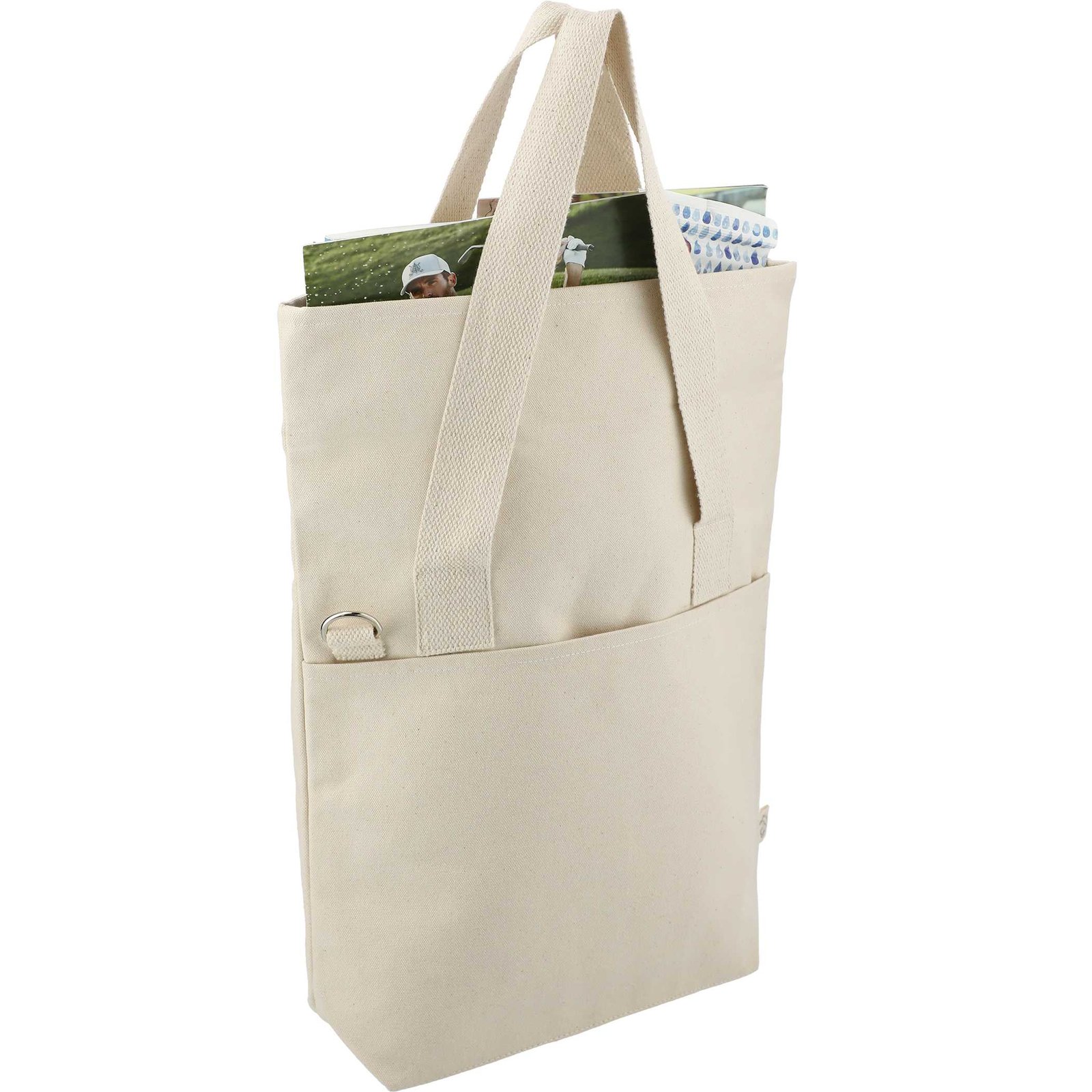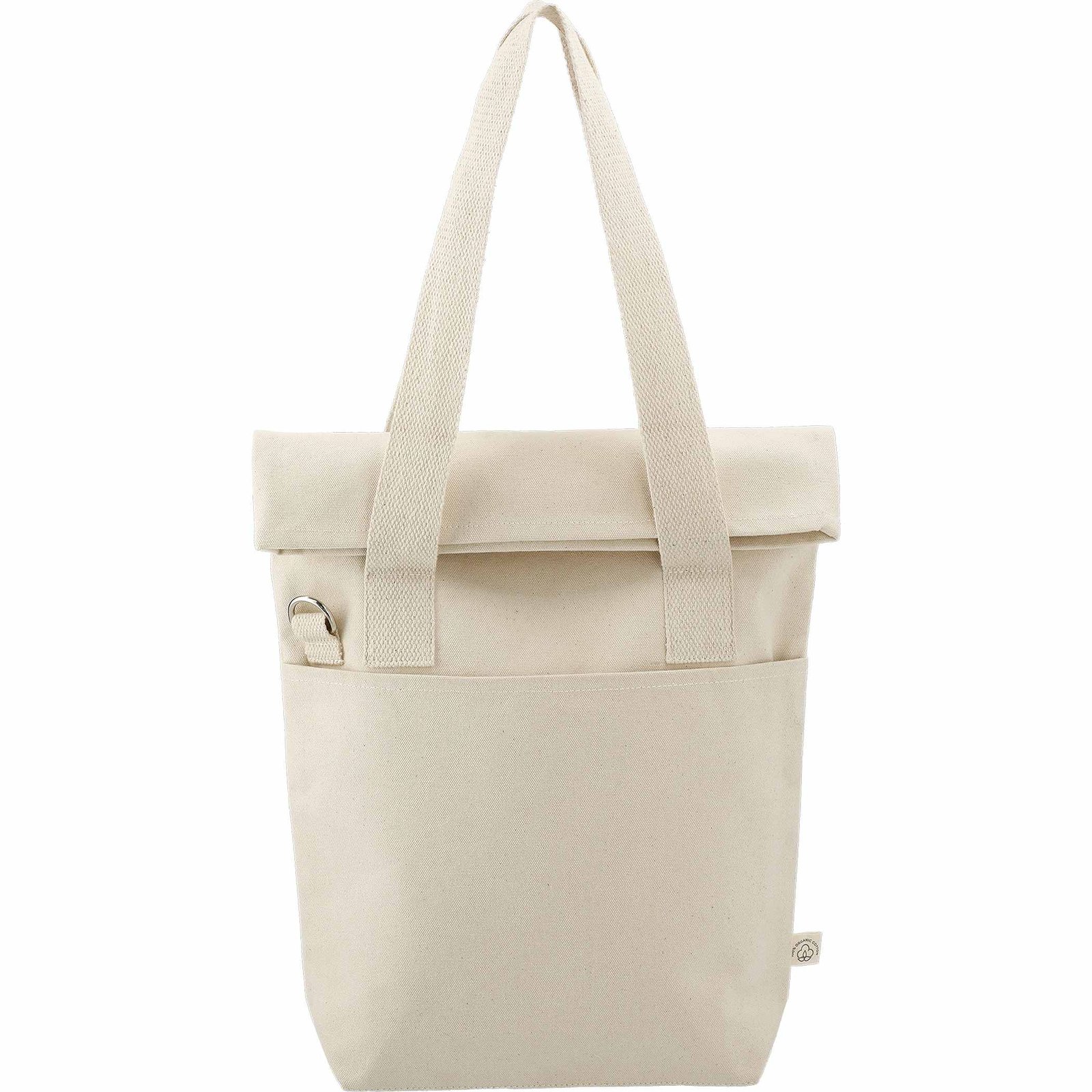 This unique styled tote is a great fit for the practical wearer. The thick strapped design make this eco-friendly bag easy to carry. Ideal for protecting your precious belongings, the fold down top flap makes opening and closing a breeze. Made from heavy weight certified organic cotton & equipped with 2 deep pockets, this bag will be perfect for running everyday errands with a carefree attitude. Also includes a key fob for easy access to keys. Through a partnership with 1% For The Planet, one percent of sales of this and all EcoSmart products will be donated to nonprofits dedicated to protecting the planet. Key Features Material: heavy weight certified organic cotton Fold-down top flap Deep exterior pocket and divider for interior Integrated key fob clip Size: 16.00 H x 13.50 W x 3.50 D
