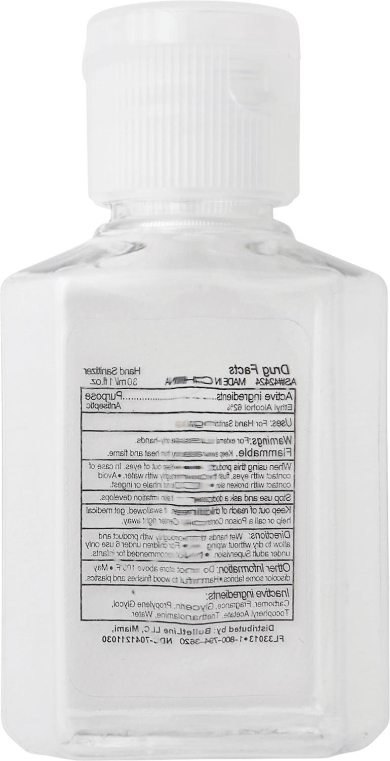 The Bullet 1oz Squirt Hand Sanitizer is an alcohol-based, 1oz (30ml) hand sanitizer in a squeeze bottle with a flip-top lid and a 62% alcohol content. Meets FDA requirements and is available for shipment within the United States (including Alaska, Hawaii & Puerto Rico). Not available for export. See General Information page for additional air shipment charges. Single color decoration only. Key Features Material: Plastic Squeeze bottle has flip-top lid and includes 1oz (30ml) of hand sanitizer Sanitizer is alcohol-based (62% alcohol content) Meets FDA requirements