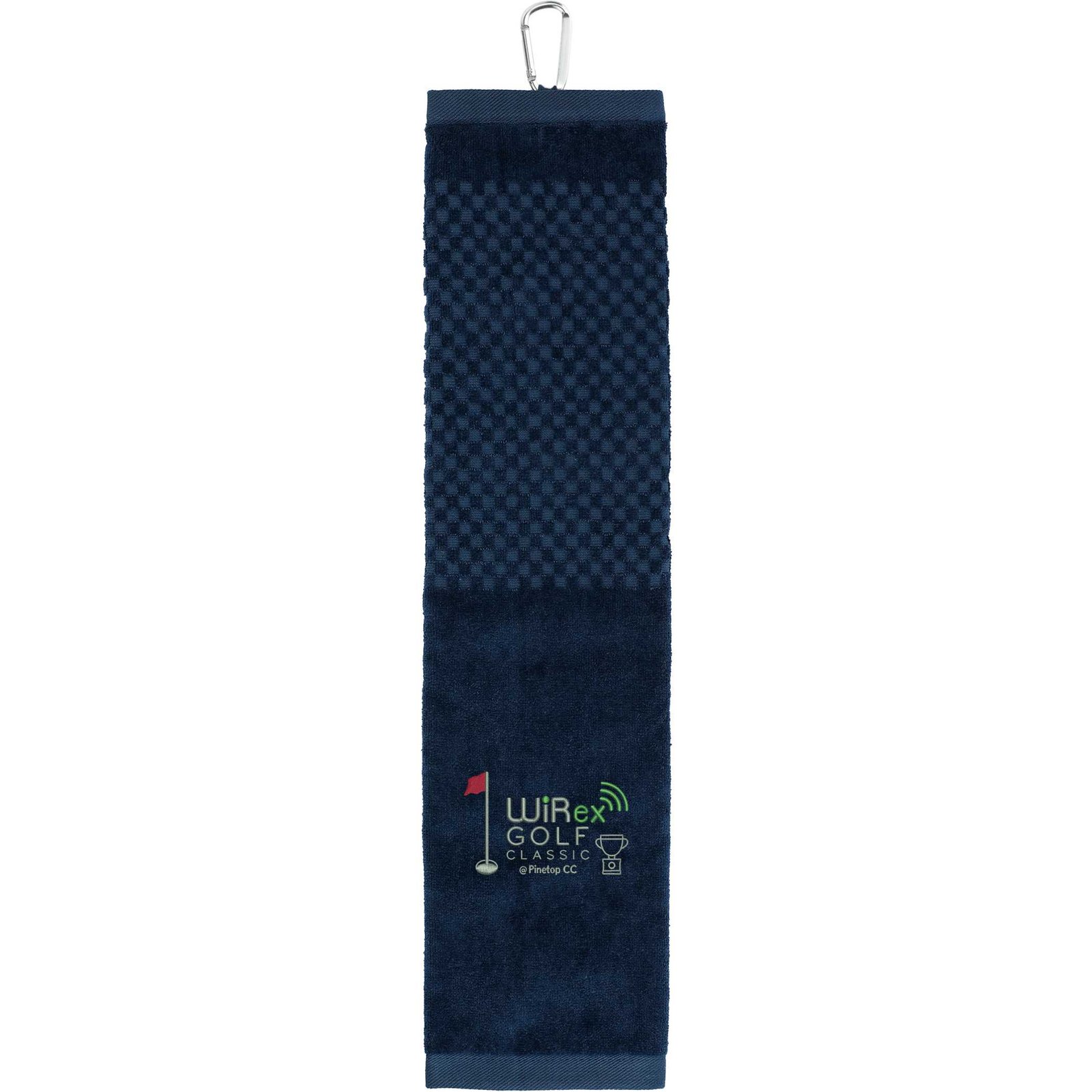 This heavyweight 3.5lb/dozen golf towel is 100% cotton and has a tri-folded design for scrubbing your golf balls and clubs. Comes with a grommet and aluminum carabiner clip for attaching to your golf bag. Free embroidery run charges on up to 10,000 stitches. Key Features 100% cotton construction – soft, absorbent, and built for durability Heavyweight 3.5 lb./dozen fabric – designed for effective scrubbing Grommet and aluminum carabiner – easily clips to golf bags for convenience Tri-fold design – compact and functional for on-course use Size: 5.25″ x 22″