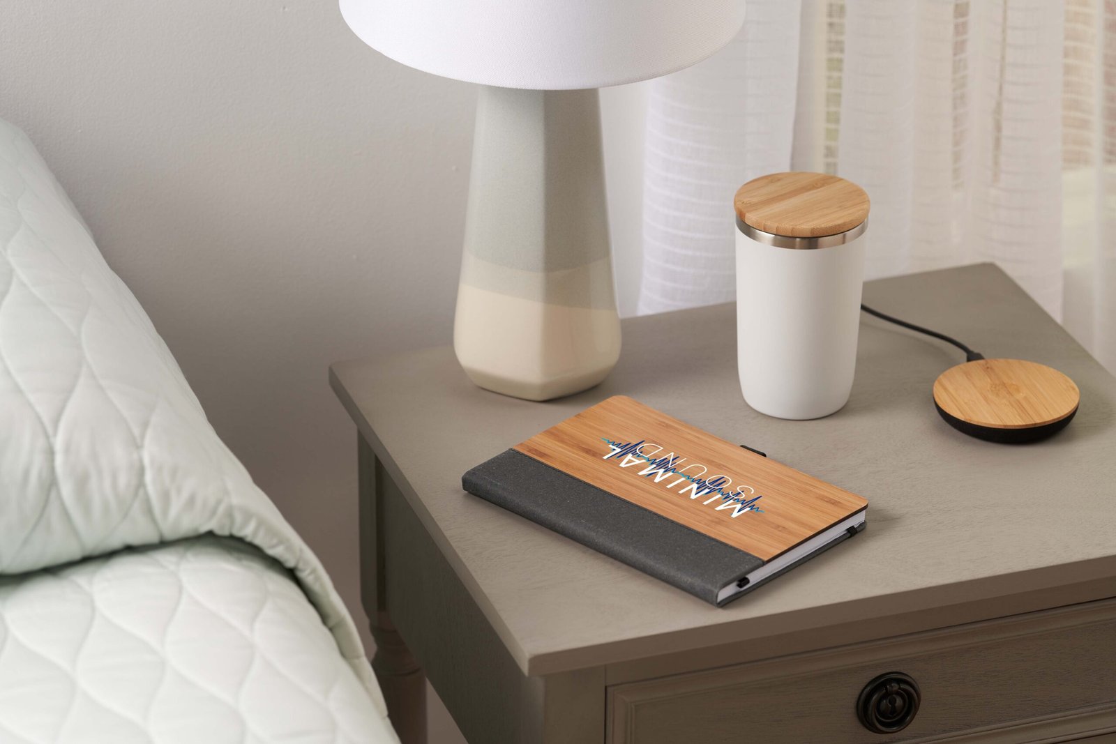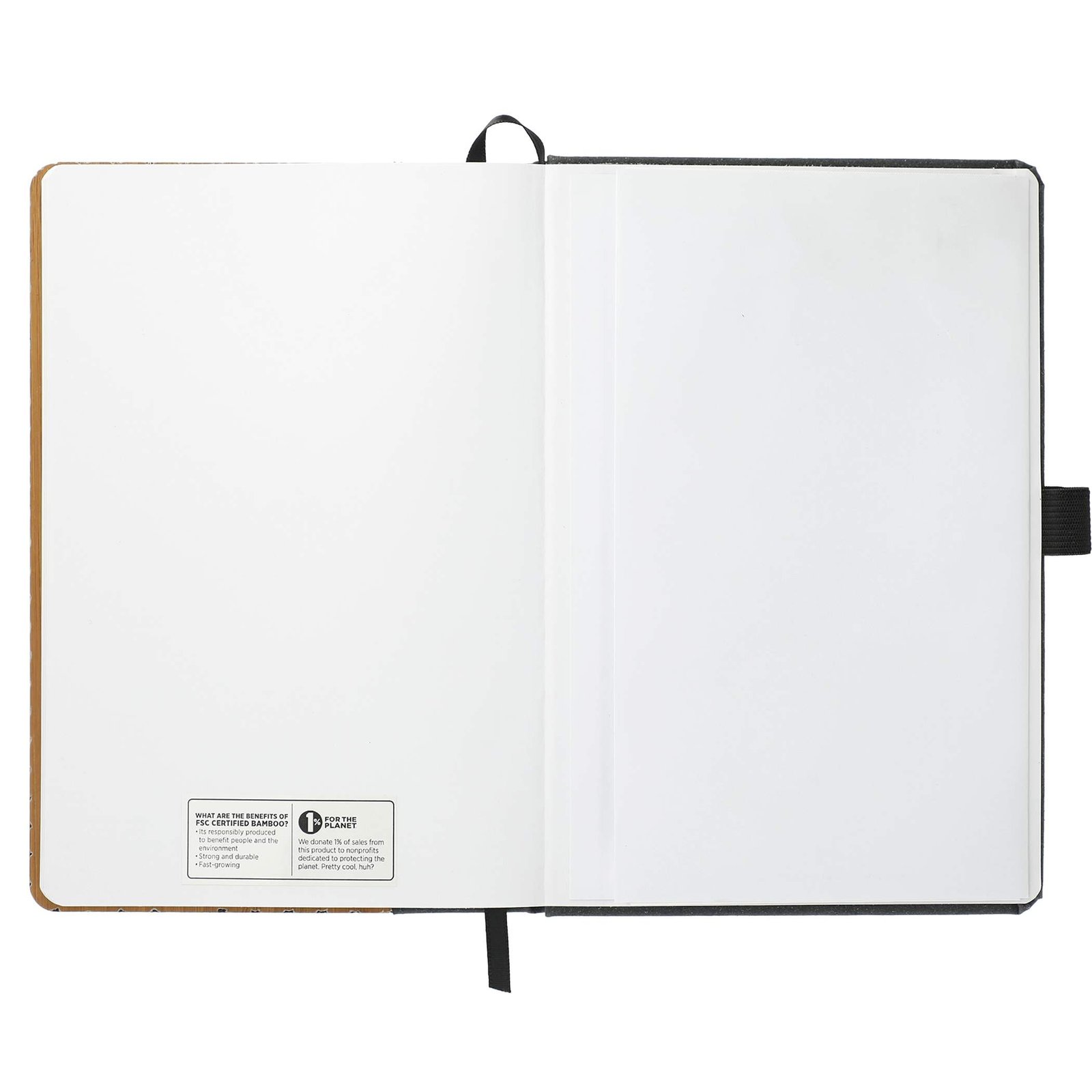 The 5.5” x 8.5” FSC® Mix Bamboo Bound Journal features a unique bamboo cover with recycled leather accent. 80 sheets of recycled, white lined FSC® Mix paper. Includes elastic closure, ribbon page marker and elastic pen loop.Through a partnership with 1% For The Planet, one percent of sales of this and all EcoSmart products will be donated to nonprofits dedicated to protecting the planet. Due to the nature of the material, there may be color variances.