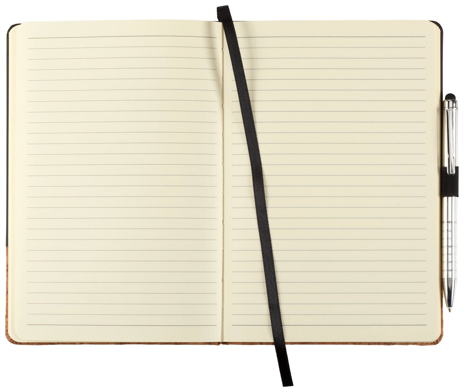 The 5.5” x 8.5” FSC® Mix Lucca Cork Hard Bound Journal features a smooth polyurethane hard cover and cork-like bottom. This specialty Journal includes color matching elastic pen loop, elastic closure, and ribbon page marker. Includes 80 sheets of cream lined FSC® Mix paper. Pen is not included. Key Features Smooth polyurethane hard cover Cork-like bottom Color matching elastic pen loop Elastic closure Ribbon page marker 80 sheets of cream lined paper