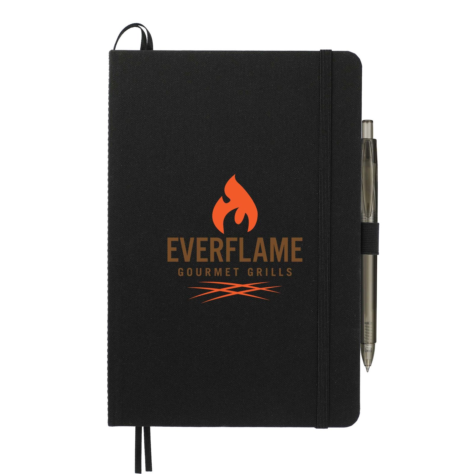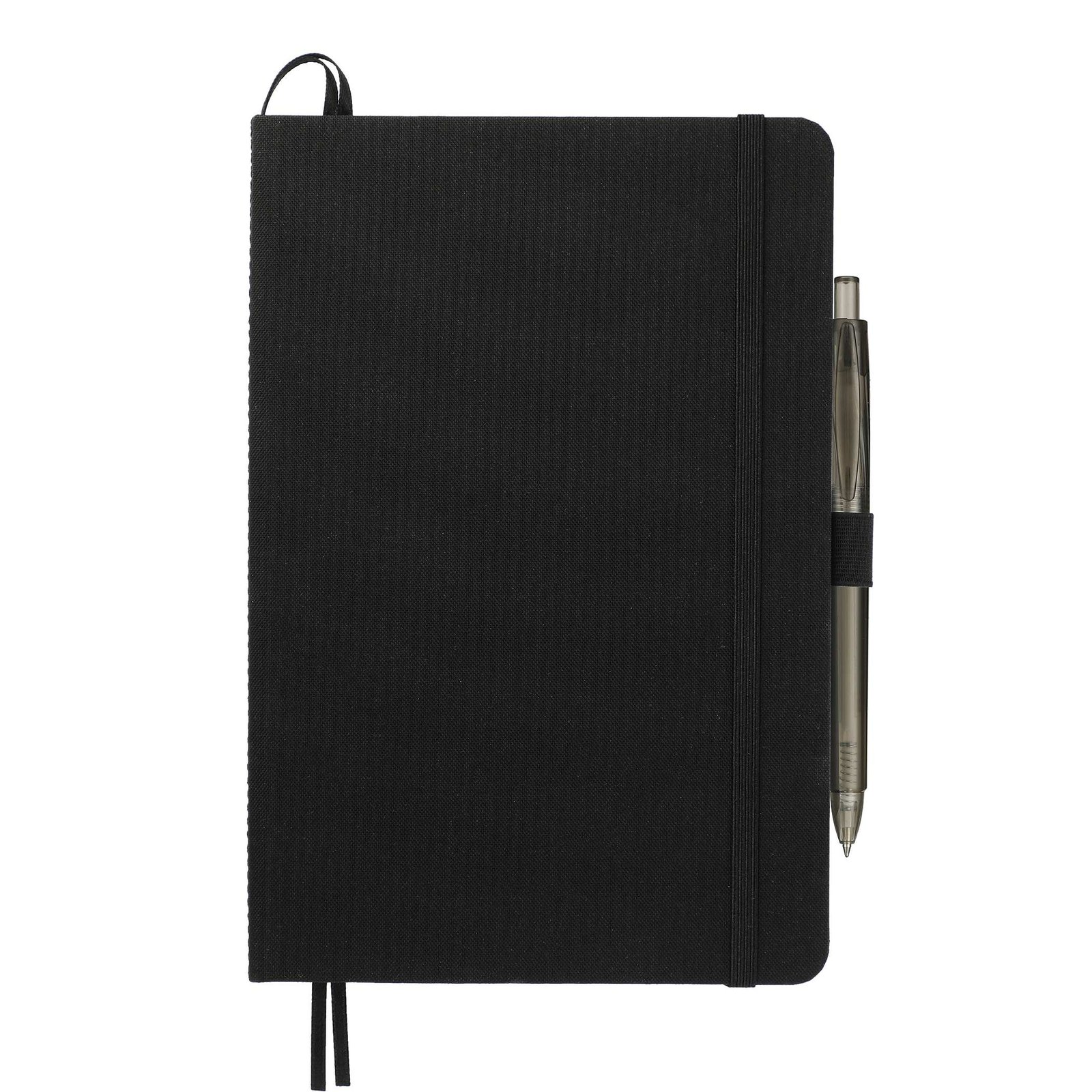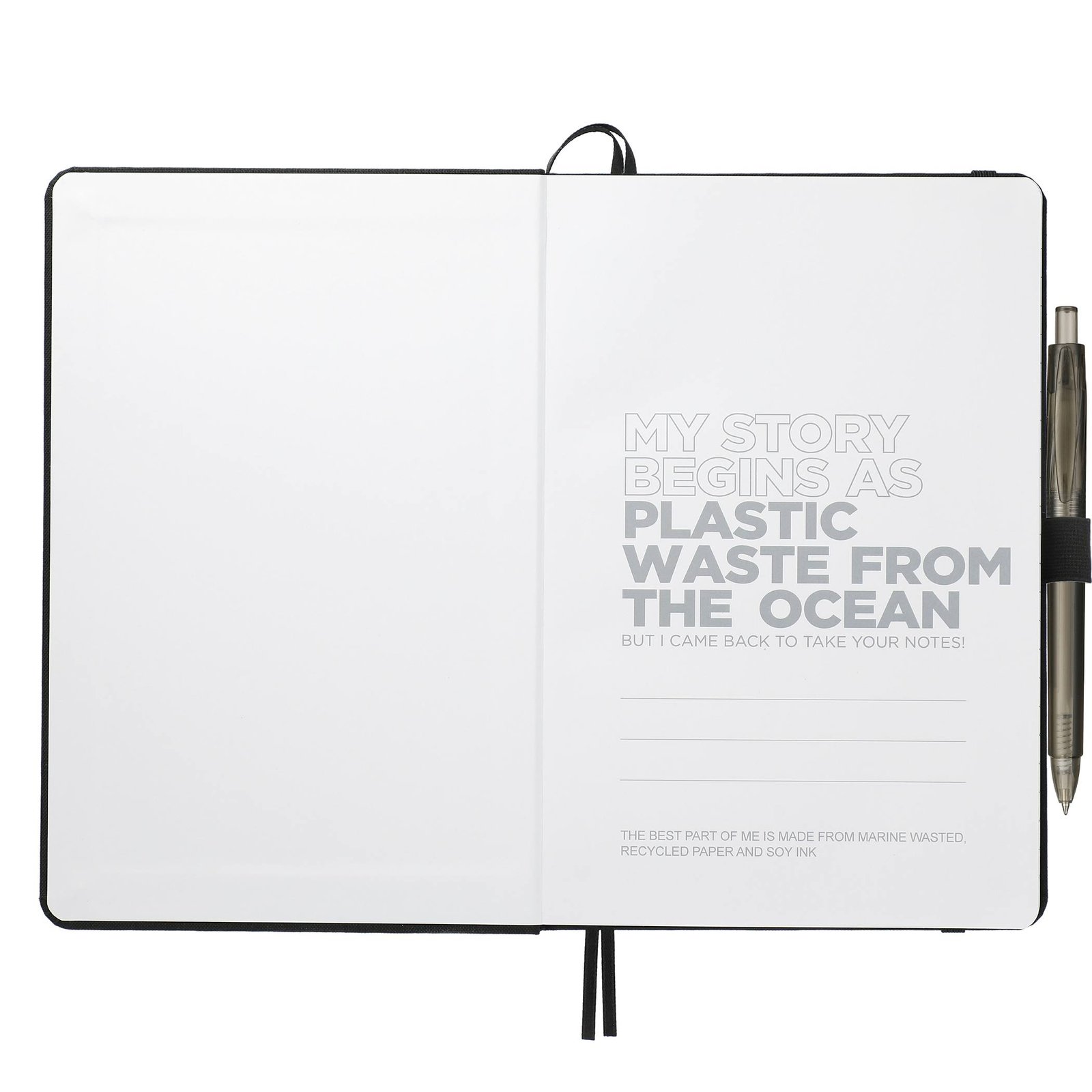 This set includes (2800-80) 5.5” x 8.5” Recycled Marine Bound Journal Set and 6003-29 FUNCTION RPET Gel Pen. Features a uniquely crafted cover material, Repreve®, which is made with recycled ocean plastic and waste collected from coastlines of developing countries. Includes color-matching elastic closure, pen loop and ribbon page marker. 96 sheets of lined recycled paper. Through a partnership with 1% For The Planet, one percent of sales of all EcoSmart® products are donated to environmental nonprofits.