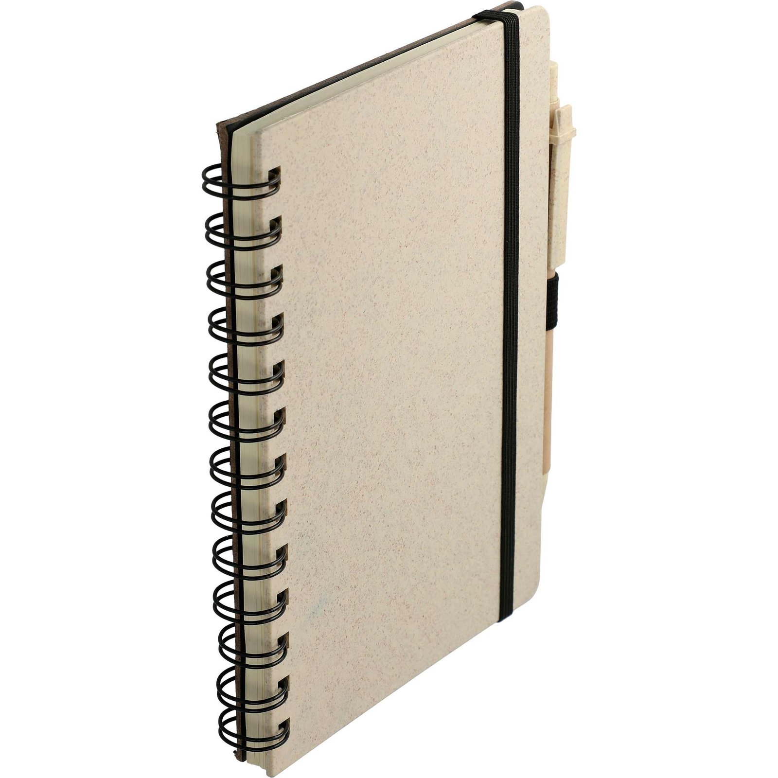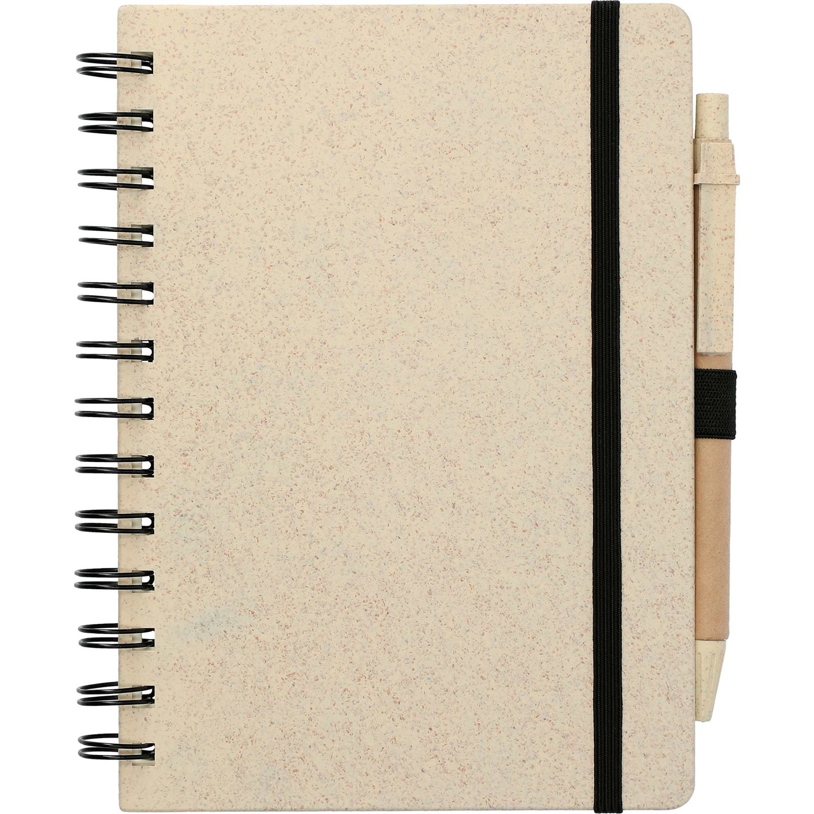 The 5″ x 7″ FSC® Mix Wheat Straw Notebook with Pen has a 51% wheat straw cover. It also features a black elastic closure and pen loop. It comes with a wheat straw color matching pen with black ink cartridge. Please note that pens are packed separately from notebooks. This wheat straw notebook contains 70 sheets of FSC® Mix lined paper. Through a partnership with 1% For The Planet, one percent of sales of EcoSmart products will be donated to nonprofits dedicated to protecting the planet. Key Features Material: Recycled materials 51% wheat straw cover Black elastic closure and pen loop Comes with wheat straw color matching pen with black ink cartridge 70 sheets of recycled lined paper Through a partnership with 1% For The Planet, one percent of sales of EcoSmart products will be donated to nonprofits dedicated to protecting the planet