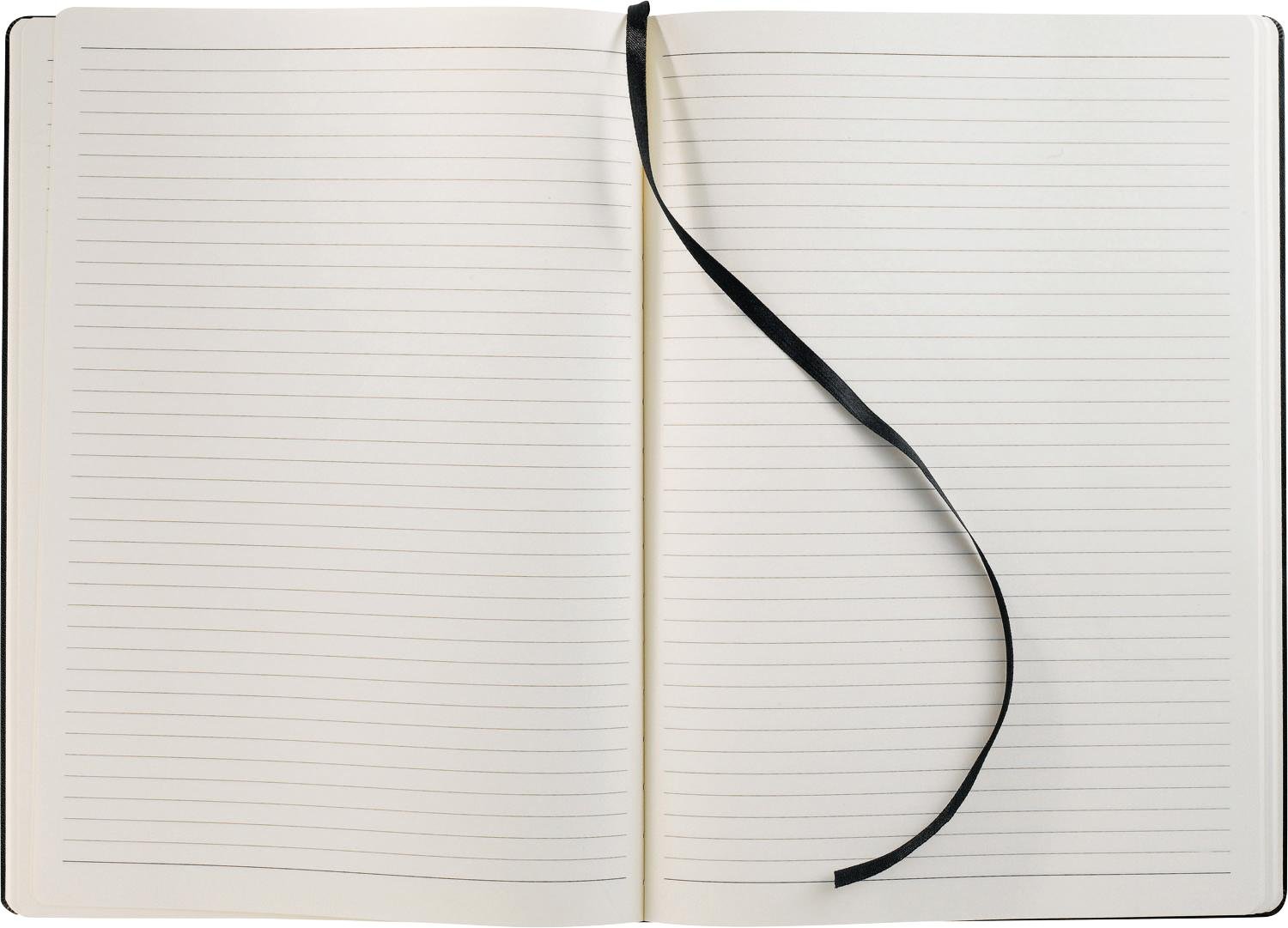 Record important notes in the 8” x 11.5” FSC® Mix Ambassador Large Bound Journal, which includes 80 sheets of FSC® Mix cream lined paper. This bound UltraHyde hardcover journal features a built-in elastic closure band, a ribbon-style page marker, and an expandable accordion pocket. Please note that laser engraving may result in minor imprint color variations between items.