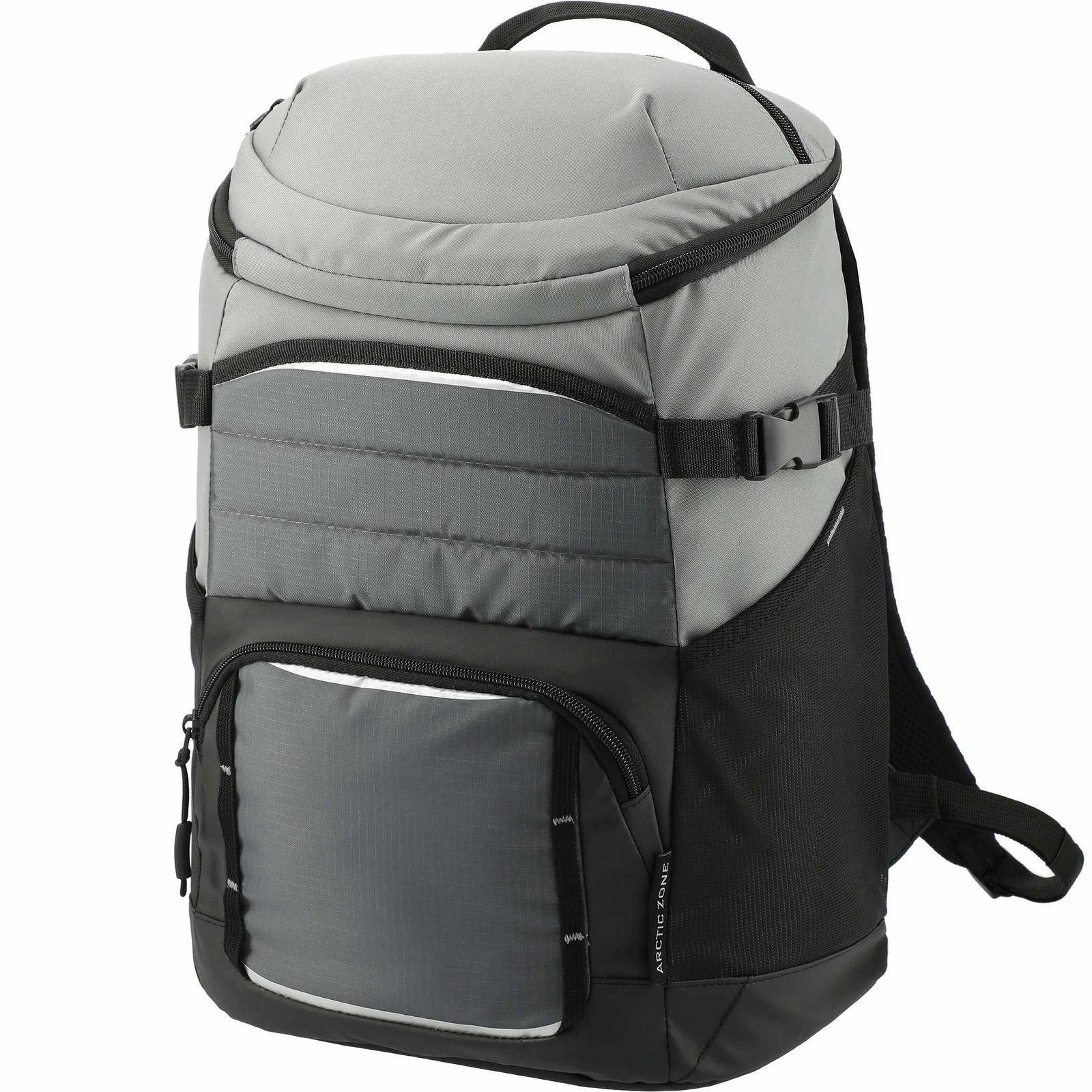 Arctic Zone® RPET Backpack Cooler with removable insulated sling makes your outdoor adventure even easier! This fully insulated backpack cooler features a padded back panel and comfortable backpack straps for easy carrying. The exterior is made from REPREVE® RPET, the world’s leading recycled fiber, which makes it extra eco-friendly. Key Features High density thermal insulation plus Therma-Flect® radiant barrier keep contents cool Detachable insulated sling Padded shoulder straps Padded back panel for extra comfort Zippered front accessory pocket Side water bottle pocket Side release buckles on the sides for extra stability