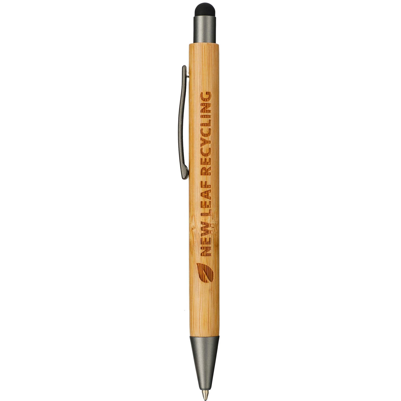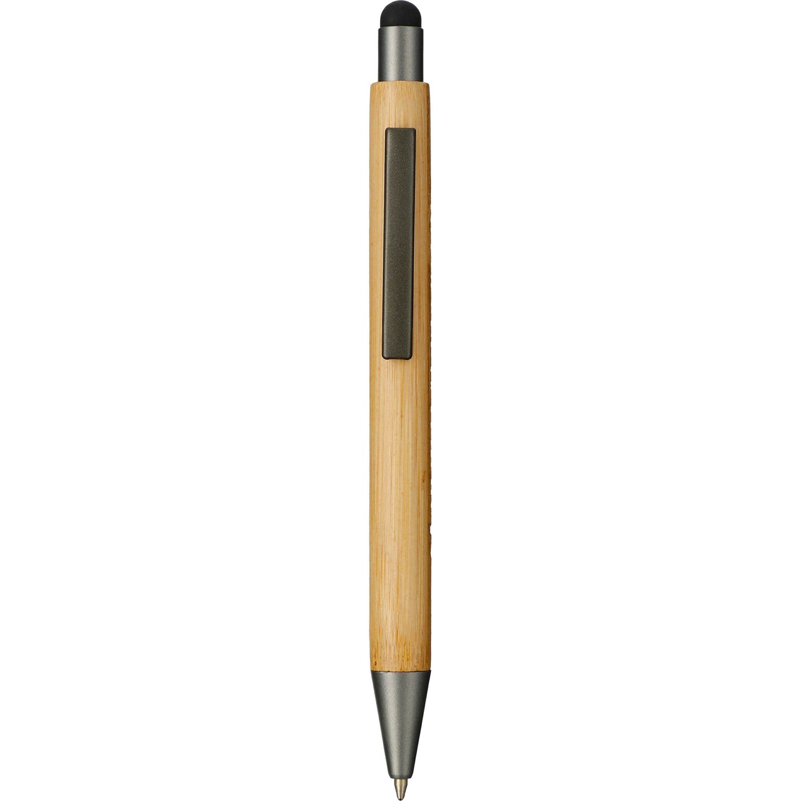 The Bamboo Quick-Dry Gel Ballpoint Stylus features a 100% bamboo barrel with gunmetal accents, creating a trendy understated look. It features a soft, rubberized capacitive touchscreen stylus and comes equipped with an ultra-smooth, quick-drying, semi-gel black ink cartridge. The pen and stylus operate using a simple click-action mechanism. The ballpoint pen tip measures 1mm and has an impressive writing length of 800m. Key Features Material: Bamboo Bamboo barrel with gunmetal detailing Soft rubber touchscreen stylus Works with most smartphones, tablets, and other touchscreen devices 1mm click-action ballpoint pen tip with 800m writing length Includes fast-drying black semi-gel ink