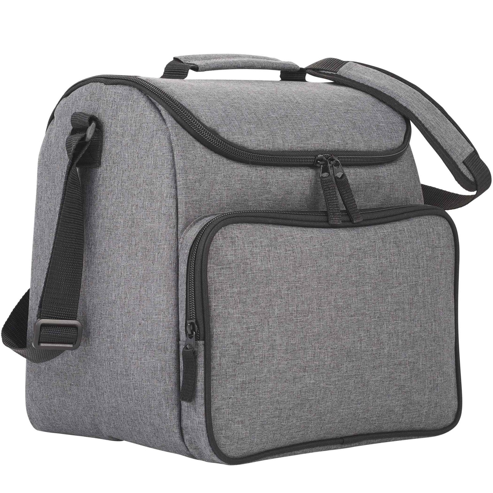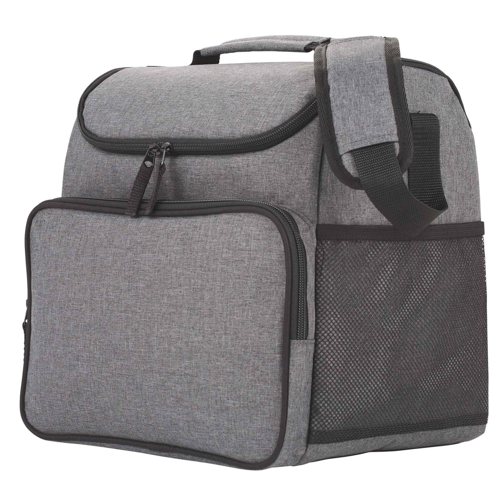 The Break Time Recycled 24 Can Event Cooler from Bullet is perfect for on the go! The padded shoulder straps makes for a comfortable carry while keeping contents secure in the white PEVA-lined interior. Key Features Large zippered top for easy access and cleaning Zippered front exterior pocket Padded adjustable shoulder strap Waterproof white PEVA lining Sturdy, padded carry handle Side mesh pocket Fits up to 24 cans