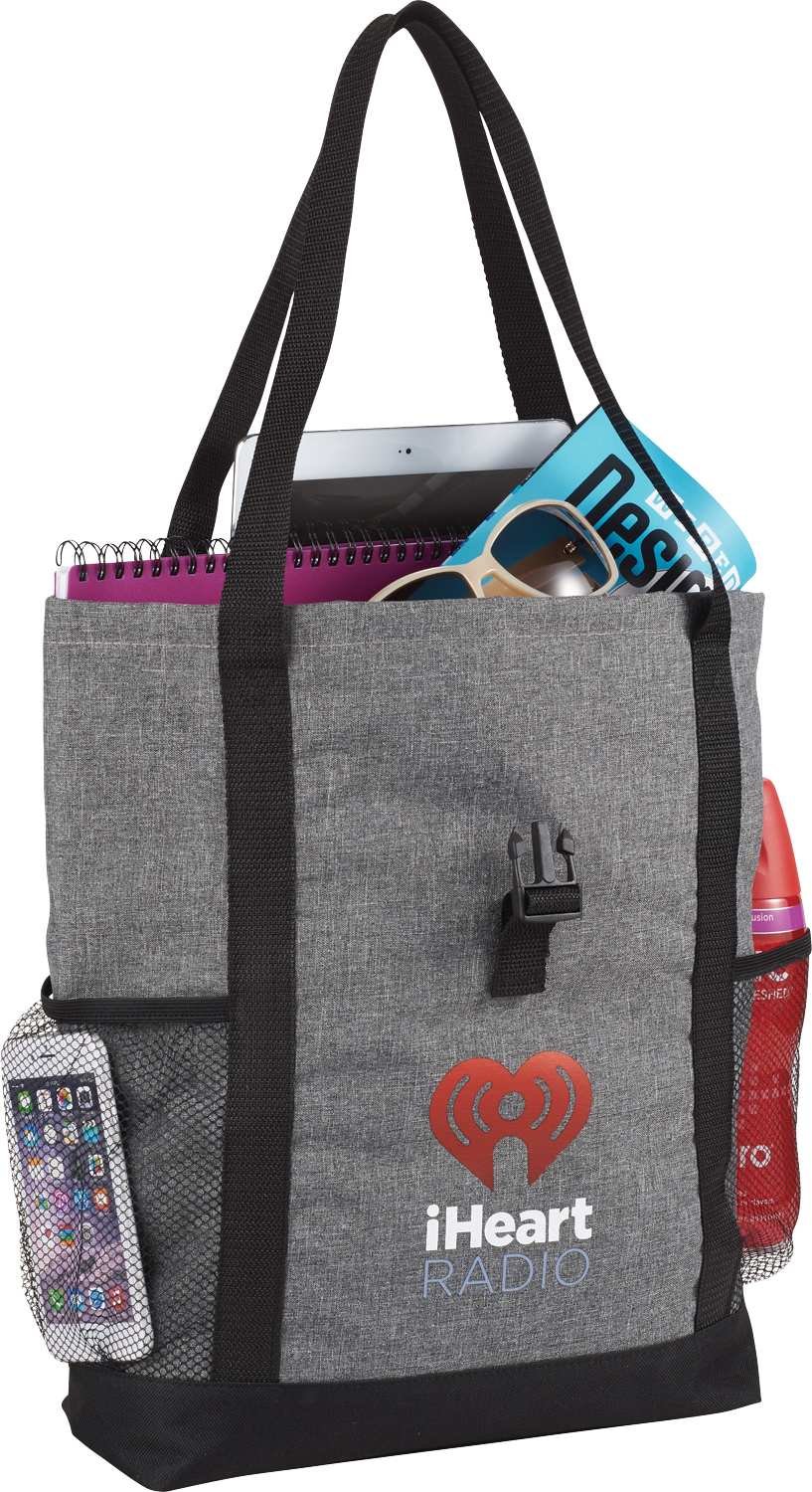 The Buckle 11″ Tablet Tote features a clip and flap main compartment closure to hold your essentials. This trendy convention tote is ideal to carry up to a 11″ tablet and other accessories and includes mesh pockets on both sides of this tote for added storage. The 11″ drop handles make this tote easy to transport. Disclaimer: There may be minor variations in color of the actual product due to the nature of the fabric dyes, weaves and printing. Key Features Material: 600d PolyCanvas Available in a variety of colors Clip and flip main compartment closure Designed to hold 11″ tablet Mesh pockets 11″ drop handles There may be minor variations in color of the actual product due to the nature of the fabric dyes, weaves and printing.