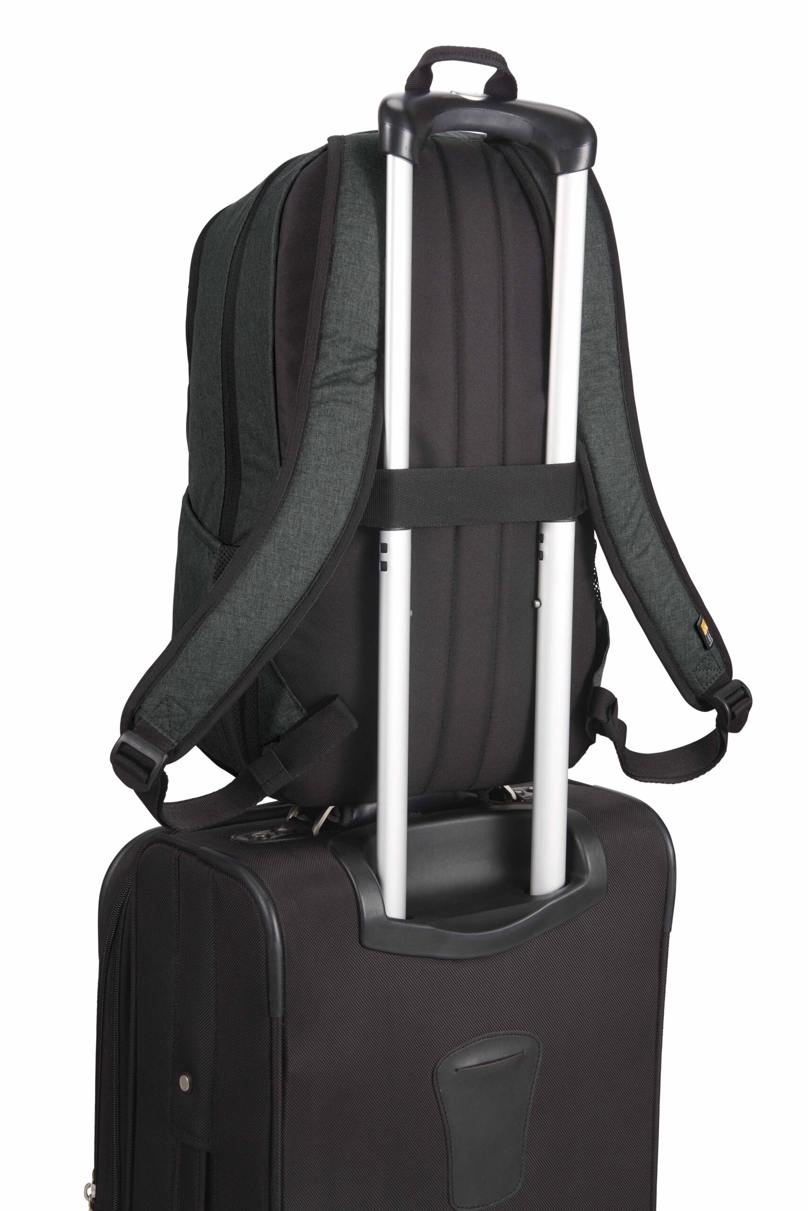 The Case Logic ERA is a 16” PolyCanvas laptop backpack with a spacious main compartment that features a thickly-padded storage sleeve for laptops up to 16”, plus a dedicated slip pocket for tablets up to 10.5”. It also contains an additional storage compartment with an organizer panel, two side pockets designed for water bottles, and a quick-access front pocket for your small electronics and go-to items. The Case Logic ERA 16” Computer Backpack has a luggage strap that securely attaches to almost any rolling suitcase, ideal for airports and travel. With heathered material, copper touch-points, and stylish trim details, this durable bag has a modern, professional look. Key Features Material: 600D PolyCanvas Dedicated 10.5” pocket for iPads and tablets Cushioned 16” laptop sleeve Water bottle pockets Organizational panel Multiple extra pockets for added storage Sturdy built-in luggage strap Contemporary, stylish appearance