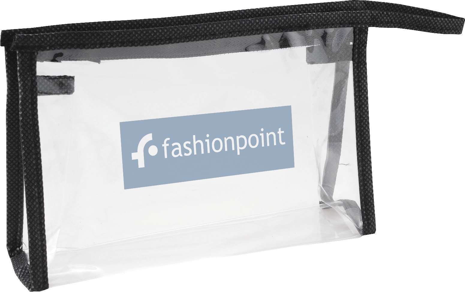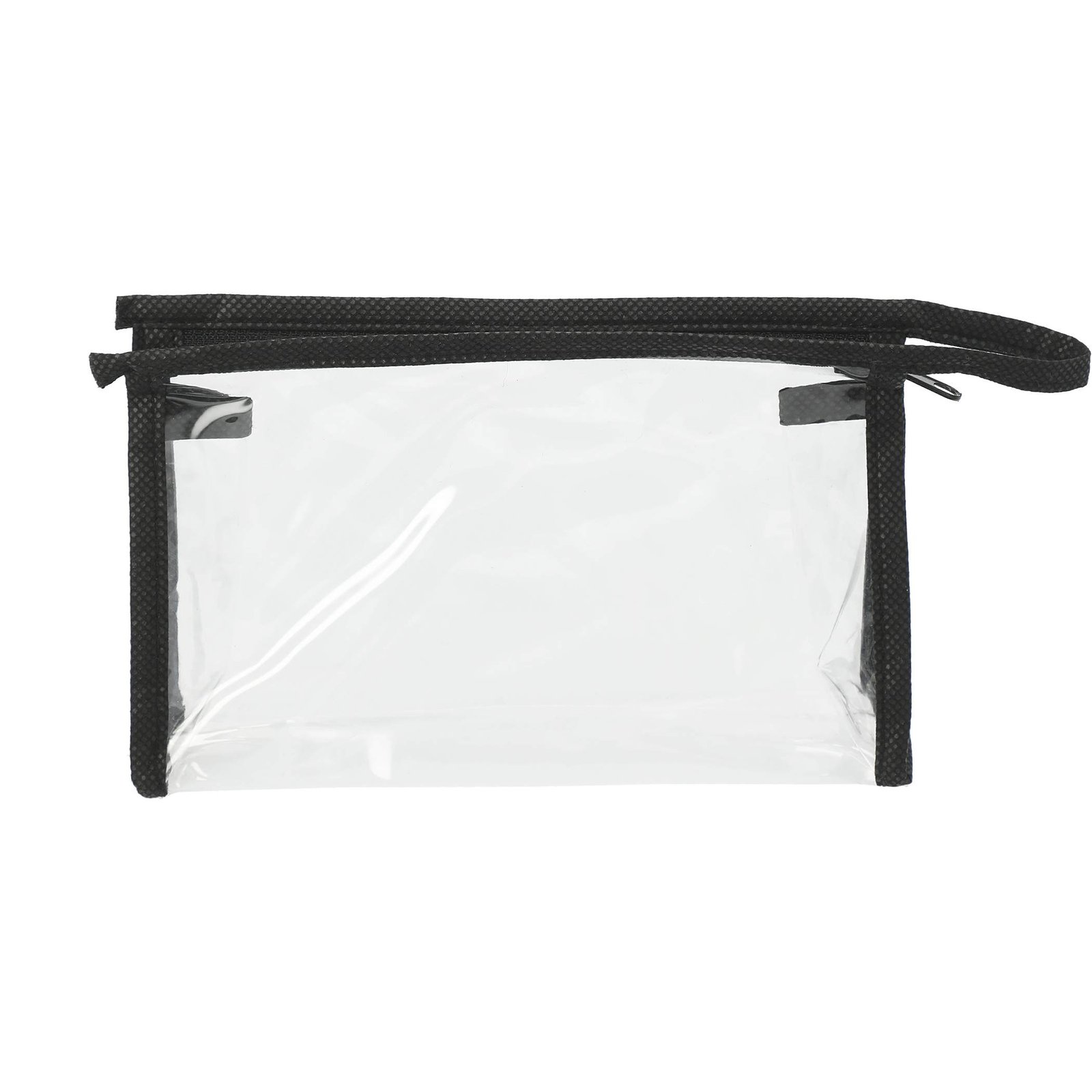 The Claro Travel Bag is the perfect size to hold toiletries or other small essentials. The clear plastic design makes finding contents easy in the zippered main compartment. The zippered closure secures items for transport in a backpack, purse, suitcase or other carrier. The fashionable trim is available in a variety of colors. Key Features Material: PVC Convenient travel size Zippered main compartment Fashionable accent stripe Available in a variety of colors