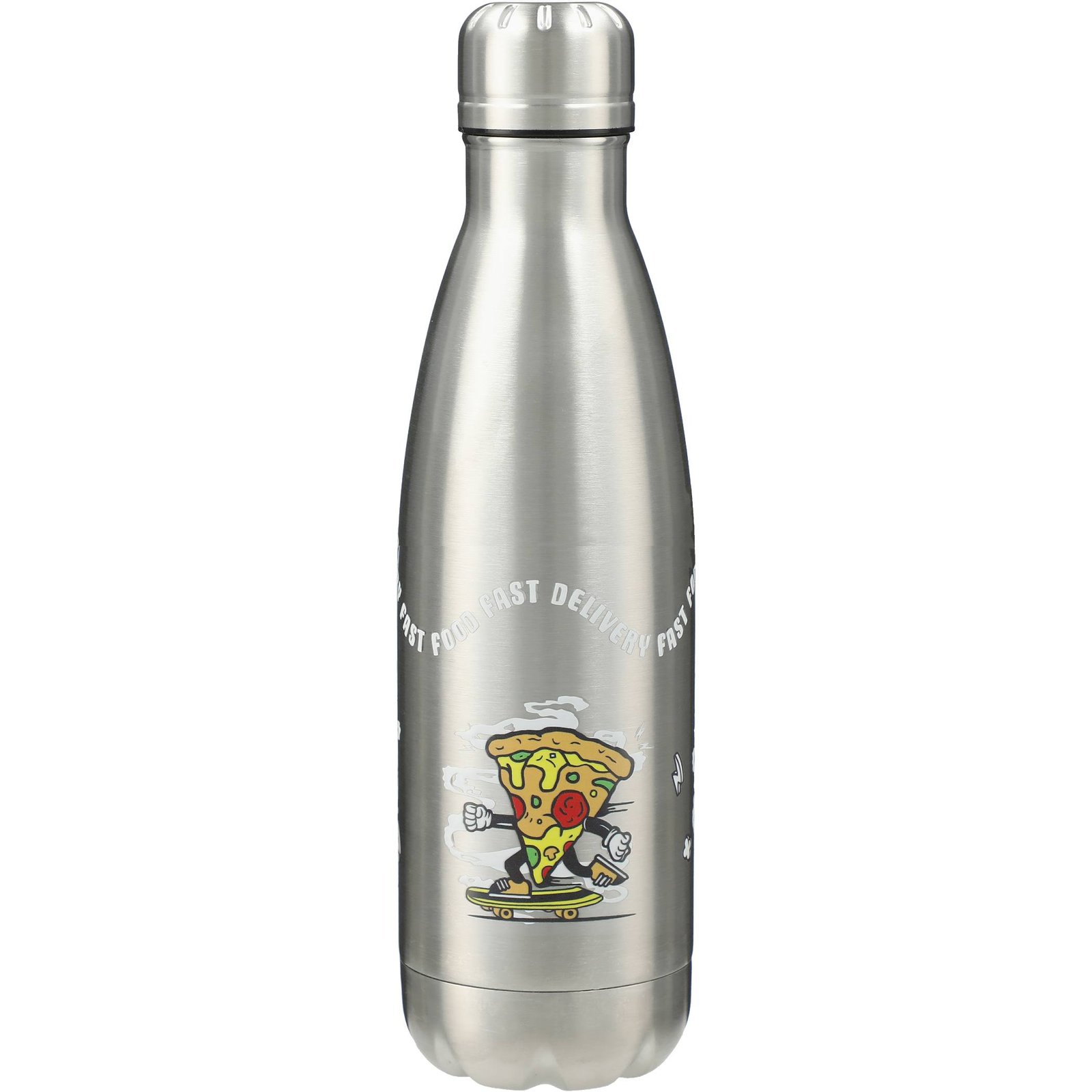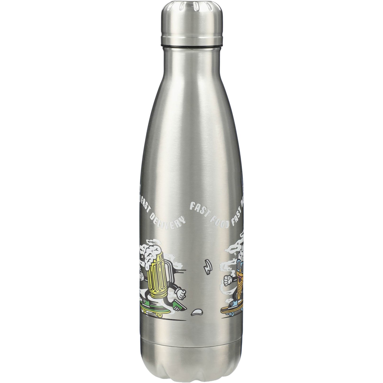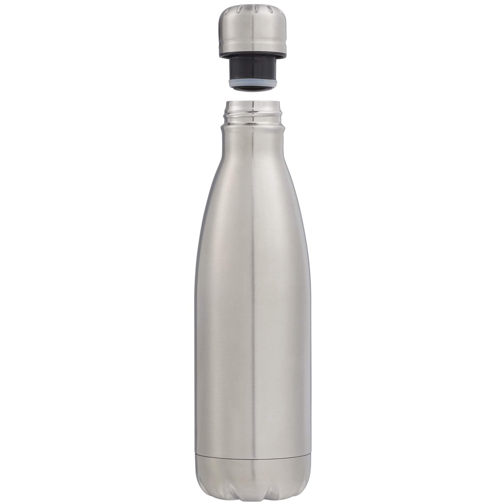 Bottle is double wall 18/8 grade stainless steel with vacuum insulation. Inner wall is plated with copper for ultimate conductivity to keep drinks hot for 12 hours and cold for 48 hours. 17oz.
