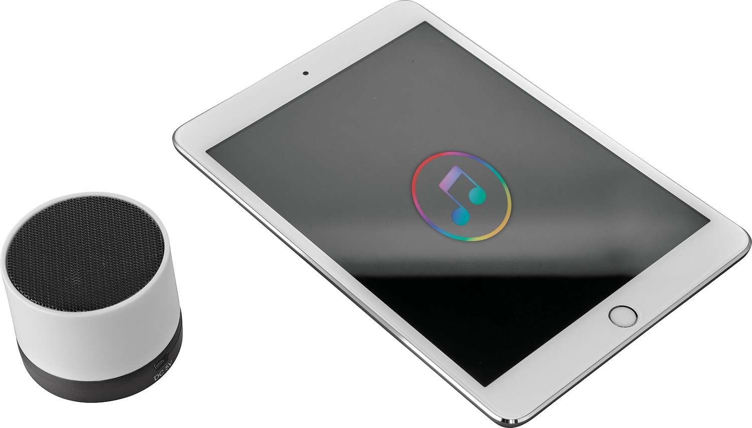 With a lightweight plastic design and internal rechargeable battery, the Cylinder Bluetooth Speaker provides up to 1.5 hours of playback time when fully charged. It charges in just one hour using the included Micro USB cable. The speaker has a powerful 3W output and a Bluetooth working range of 33 feet (10 meters). Comes packaged in a FSC®-certified premium gift box. Key Features Material: ABS plastic Internal rechargeable battery Charge Time: 1 hour Playback Time: Up to 1.5 hours at maximum volume Includes 1 Micro USB charging cable Bluetooth working range of 33′ (10m) 3W speaker output