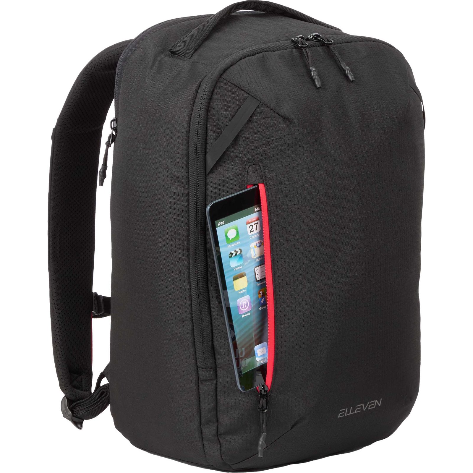 From daily trips to the office to breezing through airports, the elleven™ Luminous backpack is designed to go anywhere. Including all the travel features you need, and features you’ll wish you had years ago. Made with high-quality rPET 300D ripstop polyester, this bag has a modern style with ultra-functional design features. The large main compartment has a 3/4 – zip design, so you can lay it flat and pack as if you were packing luggage. Stay organized using the vertical front zippered pockets and quick access drop pocket behind the top handle. Keep your valuables secure using the dedicated 15” laptop compartment, the hidden stash pocket on the back is perfect for IDs or passports, and zippered pockets on the shoulder straps are great for credit cards or earbuds. The large internal zippered water bottle pocket secures your water bottle so you don’t lose it, and the integrated trolley sleeve lets you breeze through the airport. Key Features High-quality, water-resistant 300D rPET ripstop main material Large main compartment has a 3/4-zip design for easy packing Dedicated padded laptop compartment supports 15-inch laptops Vertical accent zippered front pocket adds a modern profession design element Large internal zippered water bottle pocket keeps your bottle from falling out Hidden stash pocket on the back, perfect for IDs, passports, and valuables Zippered pockets on the shoulder straps are perfect for credit cards or earbuds Chest strap for secure commuting and a trolley sleeve to roll along with your luggage Sturdy grab handle and padded shoulder straps Quick access pocket behind handle Why We Love It From daily office commutes to effortlessly navigating airports, this backpack is designed to go anywhere. How To Sell It Premium travel features, exceptional organization, and eco-friendly materials — at an unbeatable price. View Sell Sheet and Assets