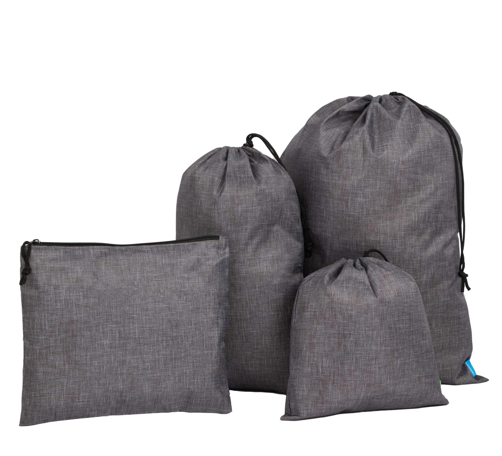 Rethink the way you travel. The Excursion four-piece set includes one zippered carrying bag that doubles as storage, one shoe bag (10”x16”), one laundry bag (15.5”x20.5”), and one stuff bag (10”x11”). Through a partnership with 1% For The Planet, one percent of sales of EcoSmart products will be donated to nonprofits dedicated to protecting the planet.