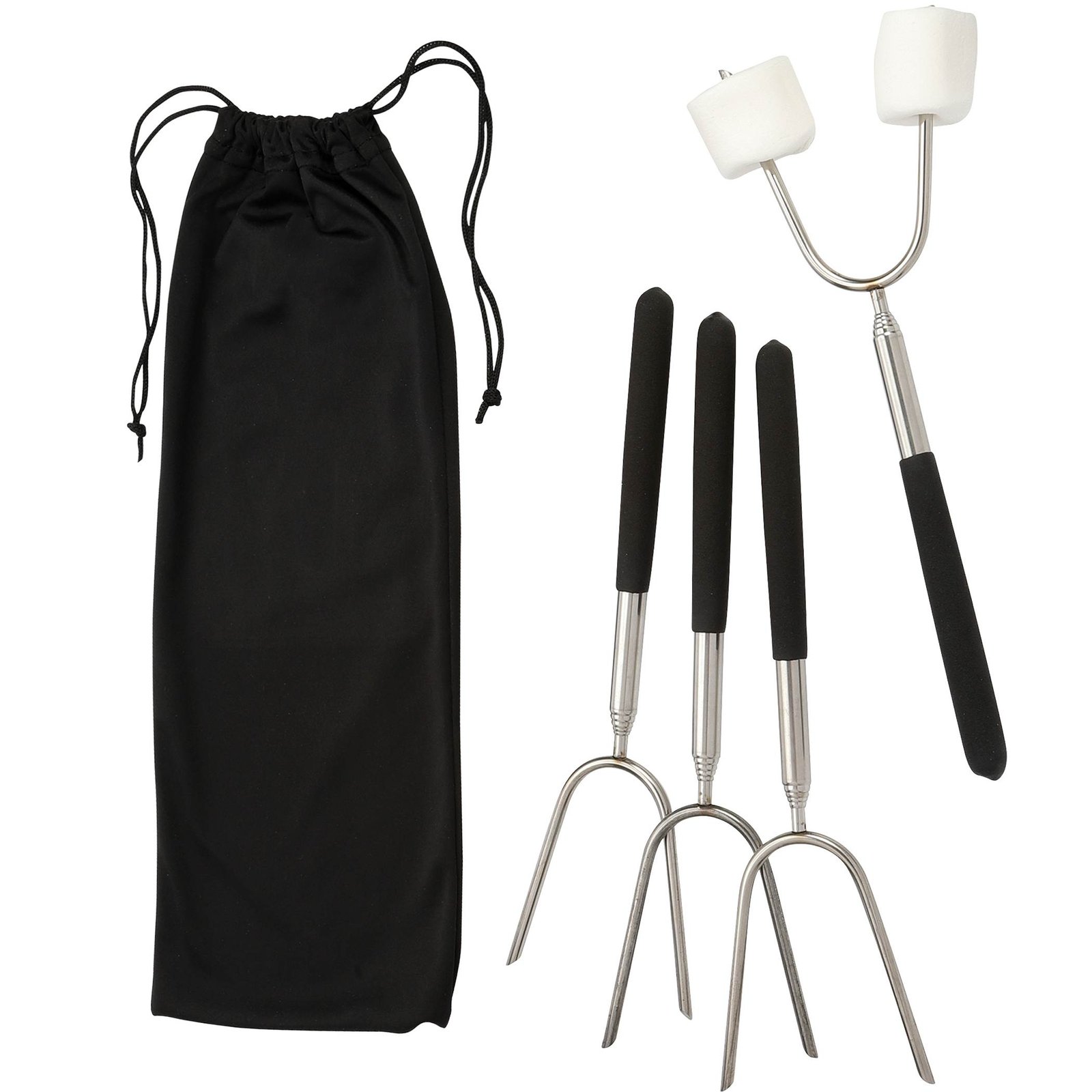 The Extendable 34″ Roasting Sticks With Carrying Case are perfect for roasting marshmallows, hot dogs, or anything that’s just more fun to cook over an outdoor fire pit. These stainless steel roasting sticks extend to 34″ to keep you a safe distance from the heat, and collapse into a convenient carrying case. The Extendable 34″ Roasting Sticks With Carrying Case feature rubberized handles to ensure a comfortable and safe grip while roasting. Key Features Material: Stainless steel Perfect for roasting marshmallows, hot dogs, and more Extend to 34″ to keep you a safe distance from the heat Collapse into a convenient carrying case Rubberized handles for comfortable, safe grip