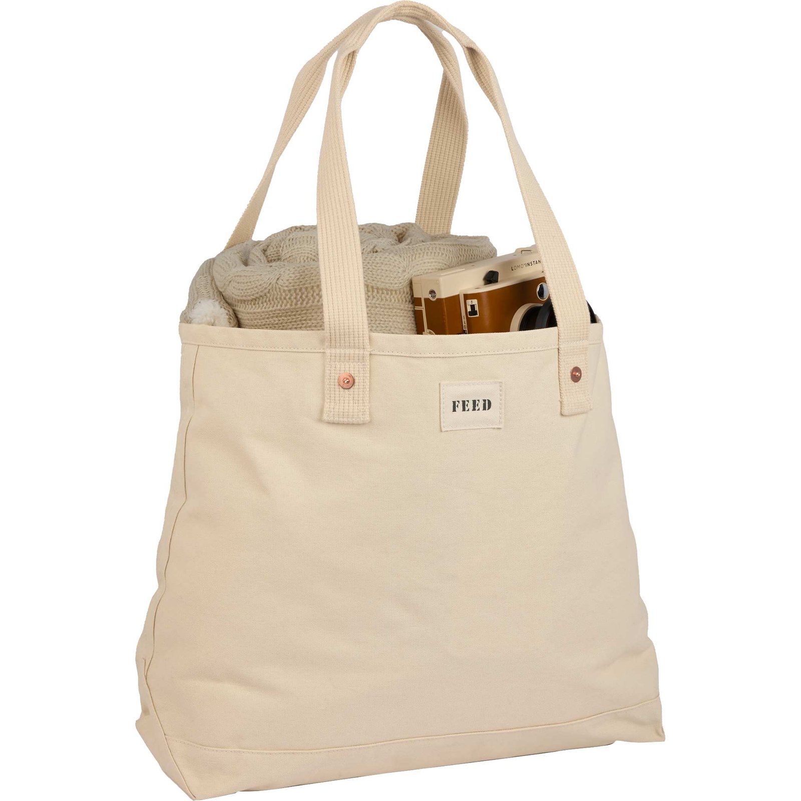 The FEED Organic Cotton Weekend Tote is perfect for carrying your stuff and feeling generous. Proceeds from this tote helps provide 5 school meals for kids worldwide living with food insecurity. Crafted using 12oz. 100% GOTS Certified Organic cotton and stylish copper rivets – this tote is both durable and classic – designed to be kept in rotation and out of landfills. Inside the tote you’ll find a pocket for extra organization with the iconic FEED giveback message screen-printed on the pocket. Key Features This bag helps provide 5 school meals to kids around the world 12oz. 100% GOTS Certified Organic cotton Copper rivets Open main compartment Interior pocket with printed FEED giveback message 10.5″ handle drop height Why We Love It Made with 100% GOTS certified organic cotton, this tote provides 5 school meals to children living with food insecurity. How To Sell It A certified B Corp prioritizing both people and the planet, FEED is on a mission to end childhood hunger, globally. View Sell Sheet and Assets