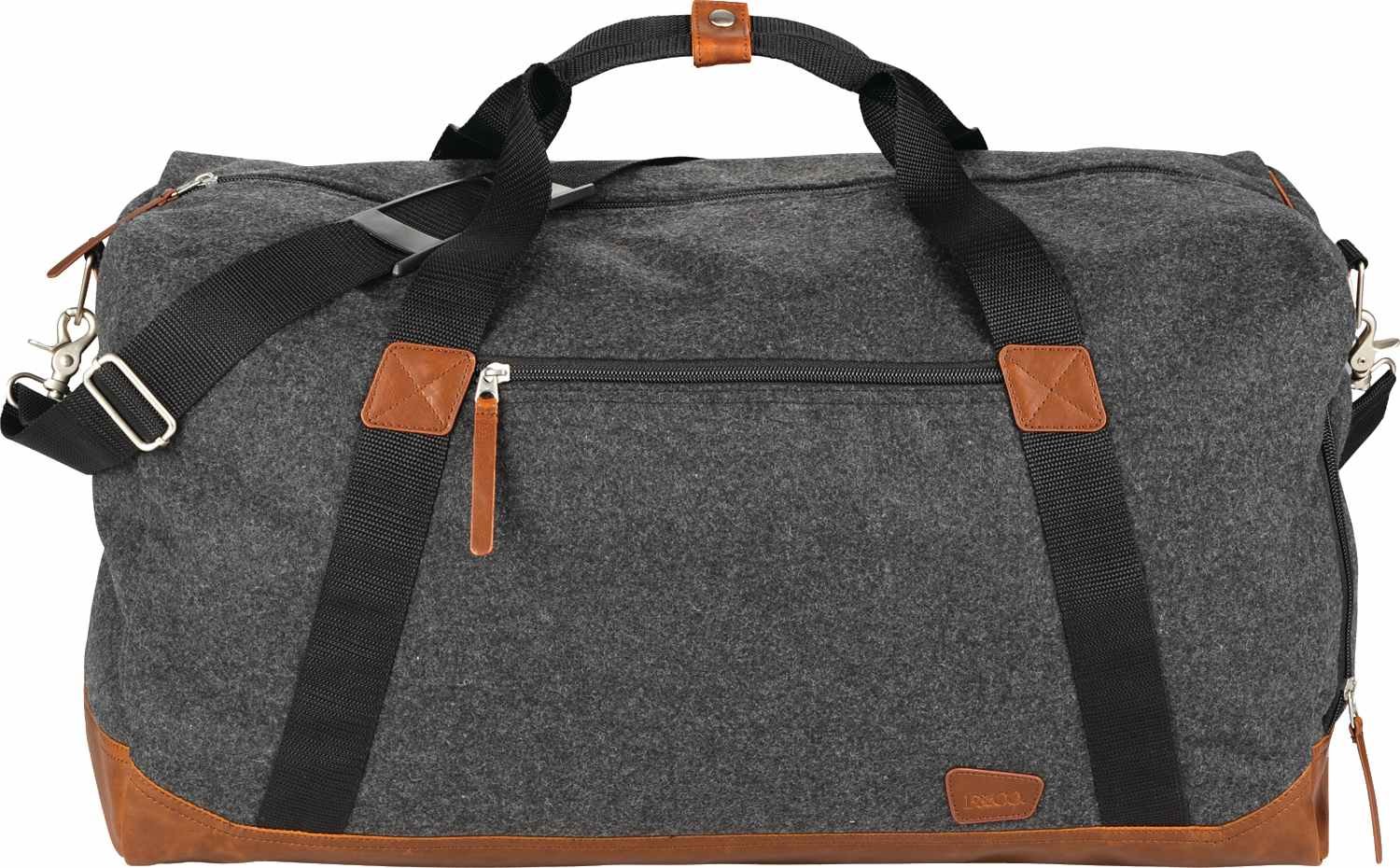 The Field & Co. Campster Duffel bag is made from a combination of wool/poly material and vinyl accents to offer the form and function of a travel weekender-sized duffel. This custom duffel bag includes interior organization, a rear trolley sleeve, and a vented side shoe pocket. The Field & Co. Campster Duffel includes a removable padded shoulder strap and top grab handles for multiple carry options. Key Features Wool/poly material and vinyl accents Removable padded shoulder strap and grab handles Vented side shoe pocket Rear trolley sleeve