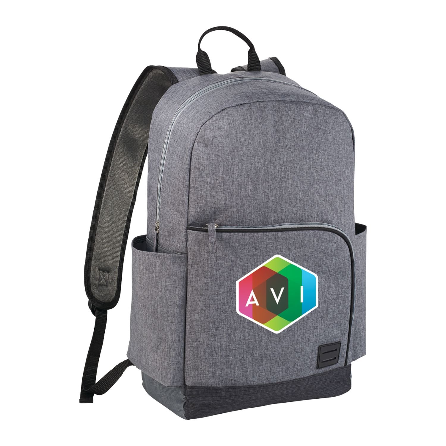 The Grayson 15″ Computer Backpack features a large zippered main compartment with room for all of your tech accessories, including a padded laptop sleeve that holds most computers up to 15″. It also has a side water bottle pocket, plus a zippered front pocket large enough to hold powerbanks, charging cables, your smartphone, and more. The Grayson 15″ has a top grab-handle for easy carrying and adjustable shoulder straps for comfortable wear. There may be minor color variations in each product due to the nature of the fabric dyes, weaves, and printing.