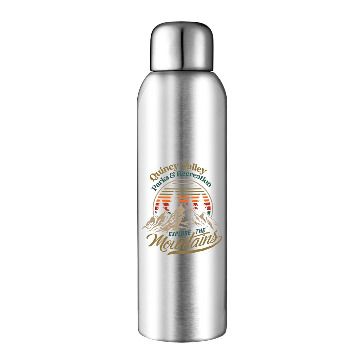 The Bullet Guzzle Stainless Sports Bottle 28oz is sleek, lightweight, and portable to keep up with your active lifestyle. It features single-wall construction and comes with a screw-on stainless steel lid that helps prevent spills and messes. The Bullet Guzzle 28oz Sports Bottle fits most standard cup holders and is hand-wash only. The color Silver cannot be laser engraved. Key Features Lightweight single-wall construction Compatible with most standard cup holders Screw-on stainless steel lid included Hand-wash only