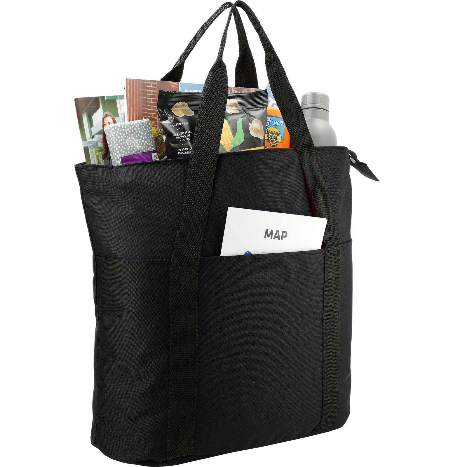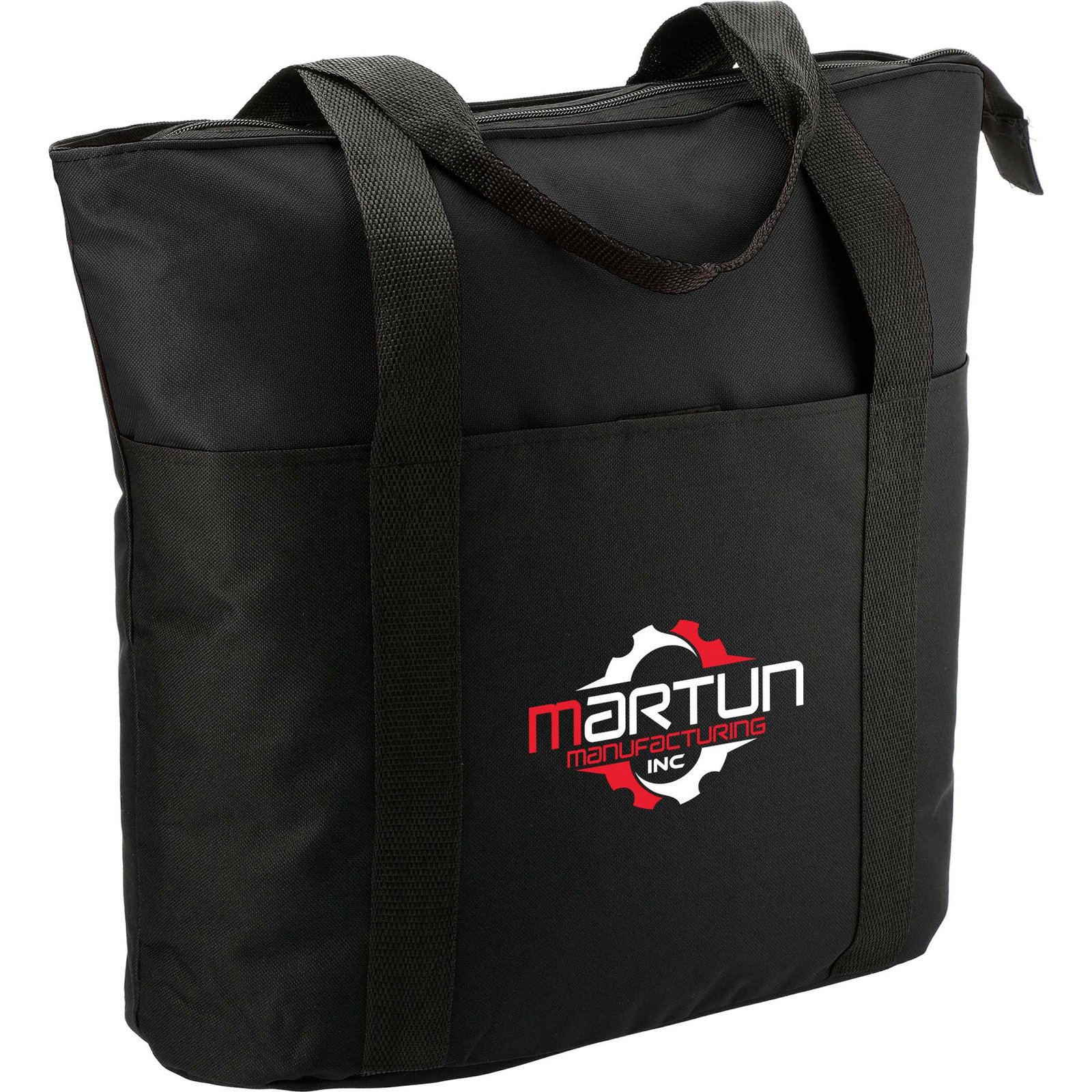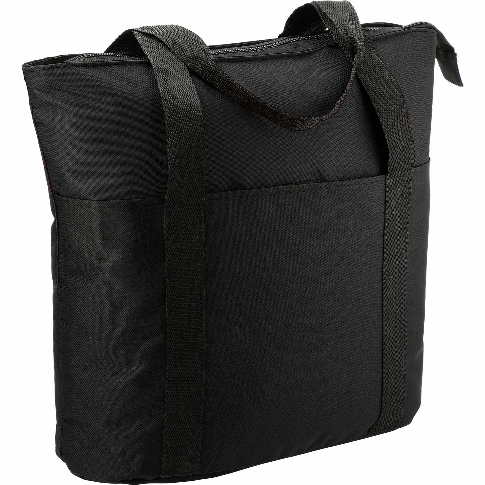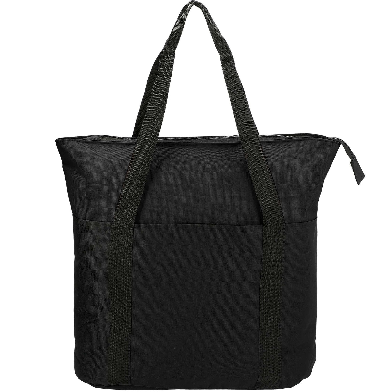 The Heavy Duty Zippered Convention Tote has a zippered main compartment and an interior zippered pocket. It also features a front pocket with a hook-and-loop closure and double 29″ handles. With sturdy construction and a lightweight design, this PolyCanvas zippered tote is great for conventions, tradeshows, and business meetings around town. Key Features Material: 600D PolyCanvas Roomy zippered main compartment Zippered interior pocket for added storage Front pocket with secure hook-and-loop closure Dual 29″ handles