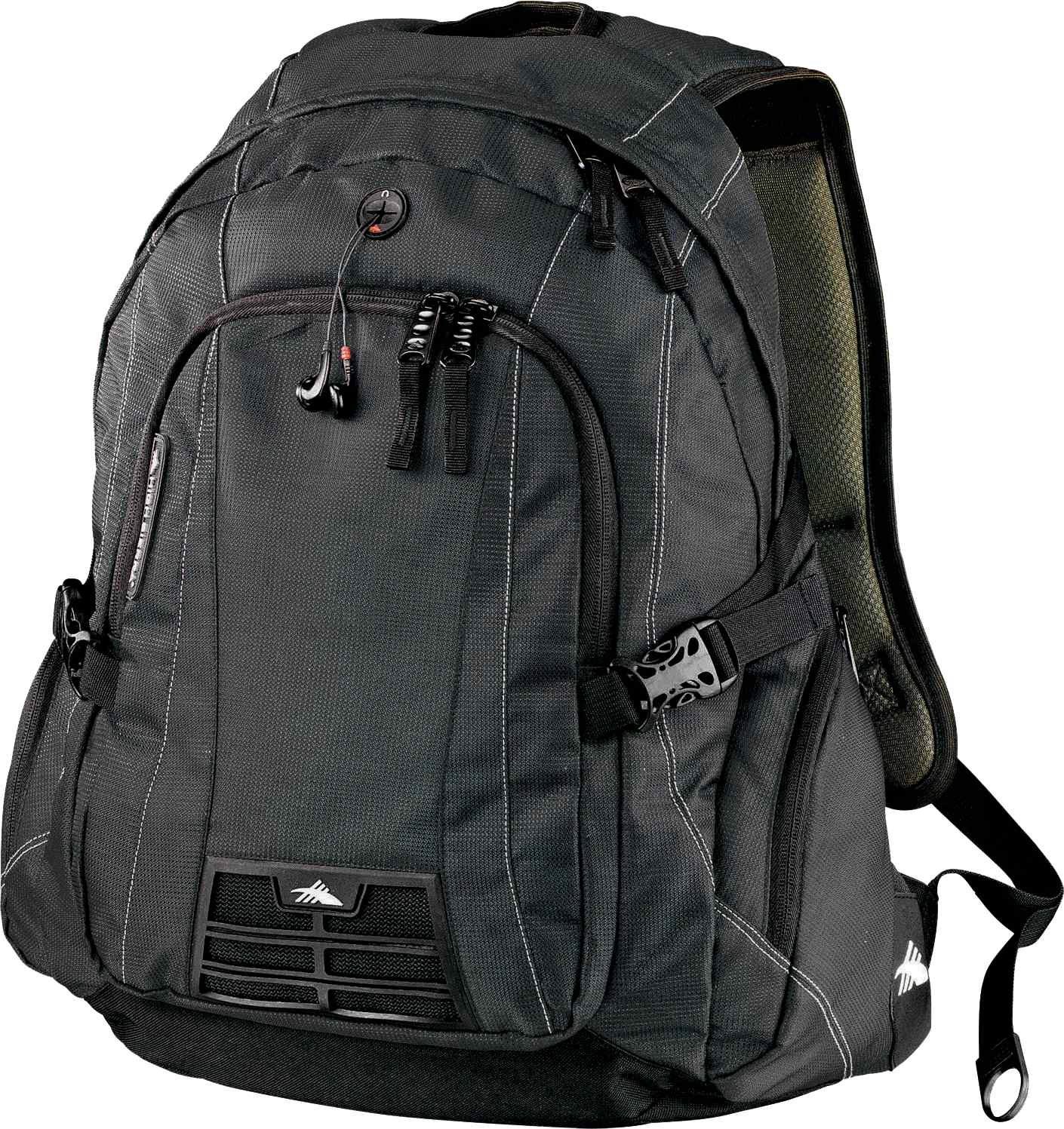 The High Sierra Magnum 15″ Computer Backpack features a padded interior computer sleeve with a back-access zipper that holds most laptops up to 15″. It also comes with a deluxe organizer with pen pockets, a zippered mesh pocket and key fob, and a Tricot-lined pocket with a convenient headphone port. You can store additional accessories in its zippered side pockets, or keep your smartphone in its snug cell phone pocket. The High Sierra Magnum features yoke-style, S-shaped, Vapel mesh Airflow padded backpack straps, plus an integrated grab-handle for comfortable carrying. Key Features Material: 600D Duralite and Waffle Weave Zippered padded computer sleeve fits most laptops up to 15″ Includes deluxe organizer, headphone port, and key fob Cell phone pocket plus multiple storage compartments Breathable Vapel mesh Airflow padded back Comfortable padded straps Sturdy built-in handle for added portability