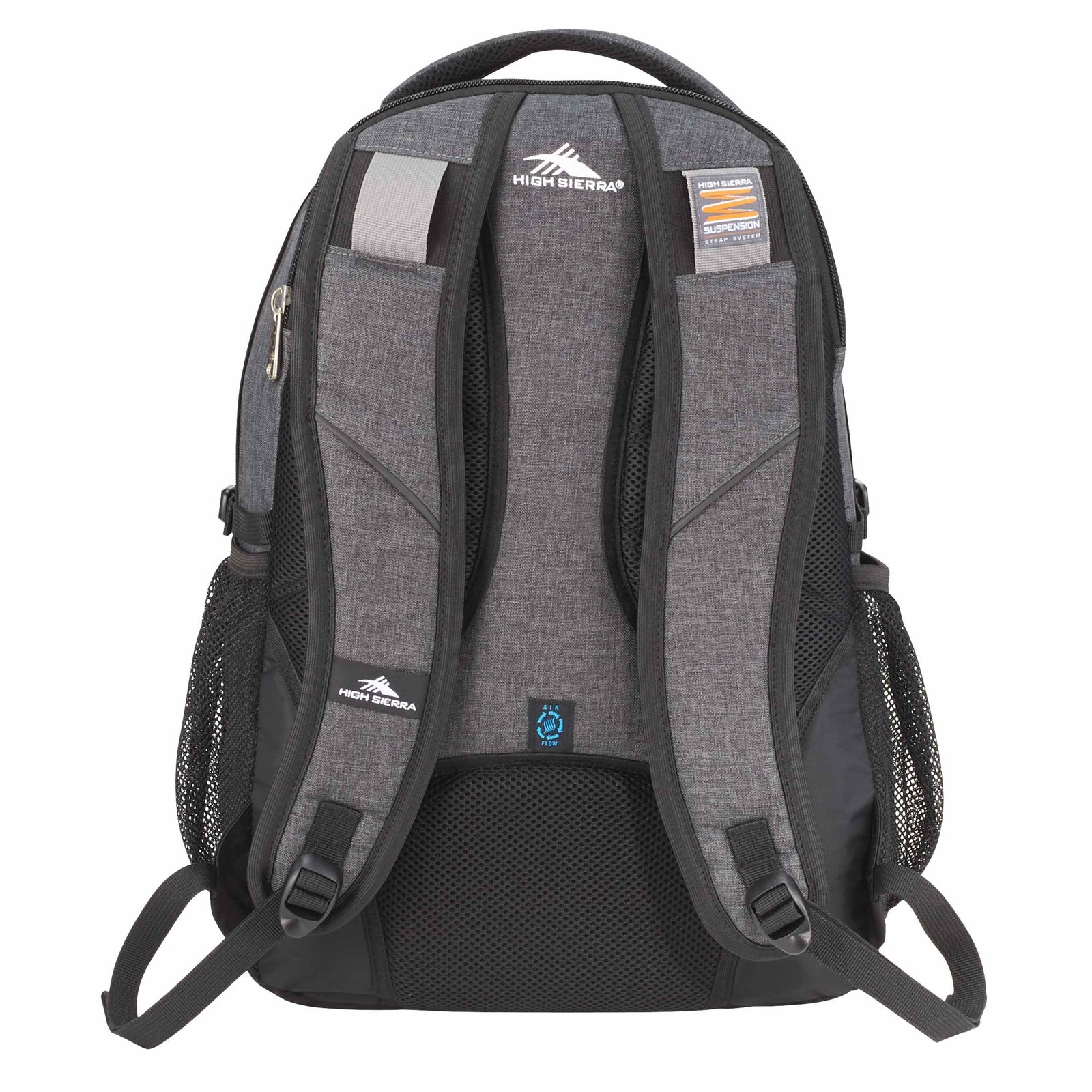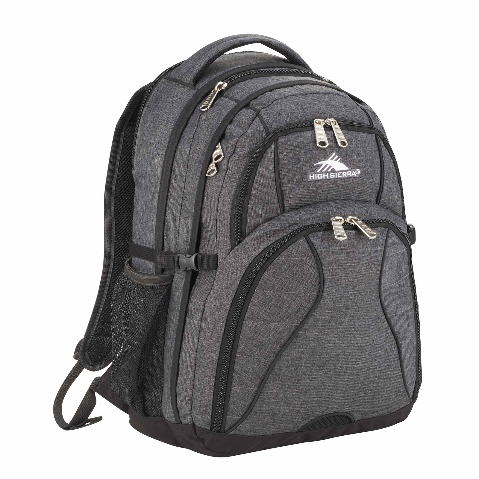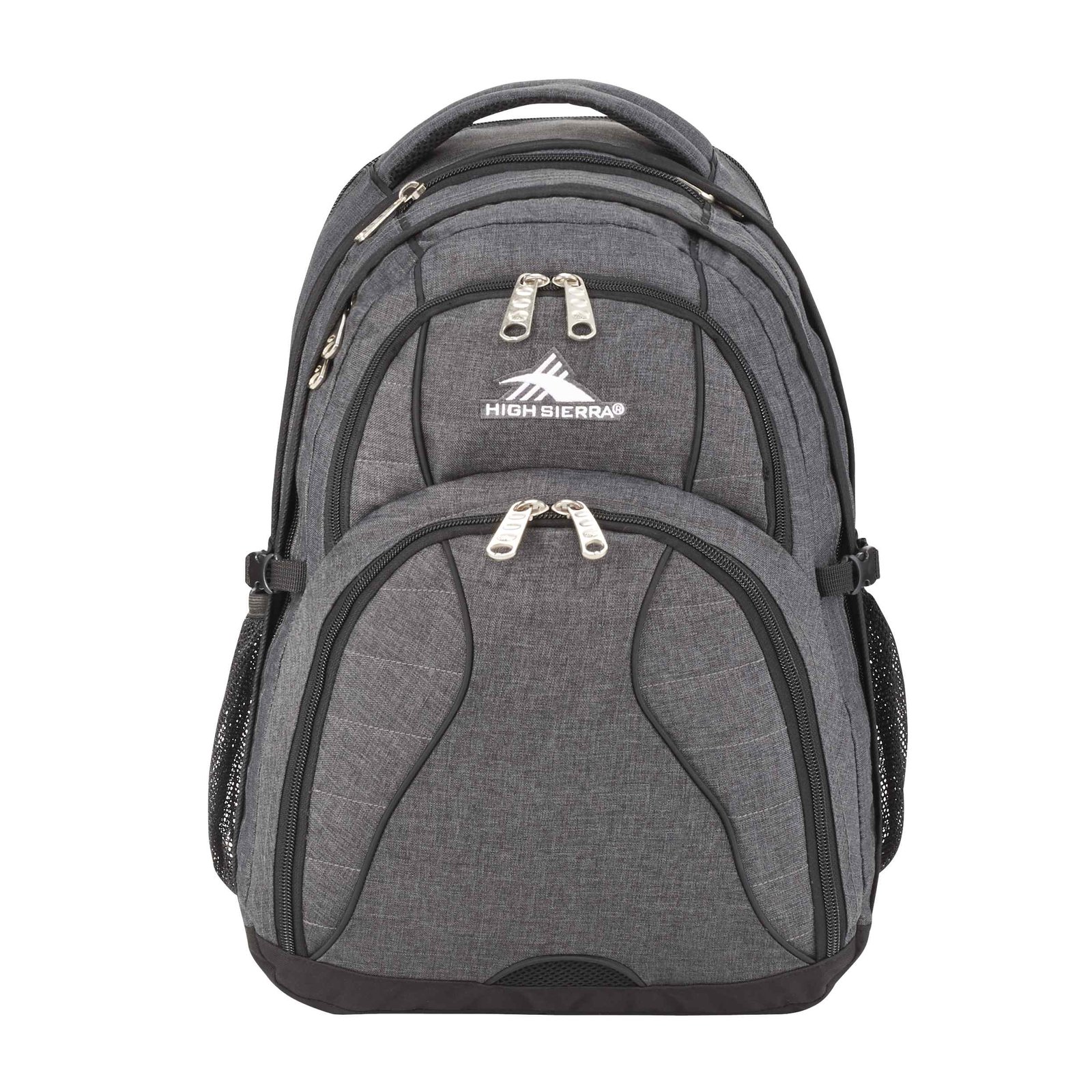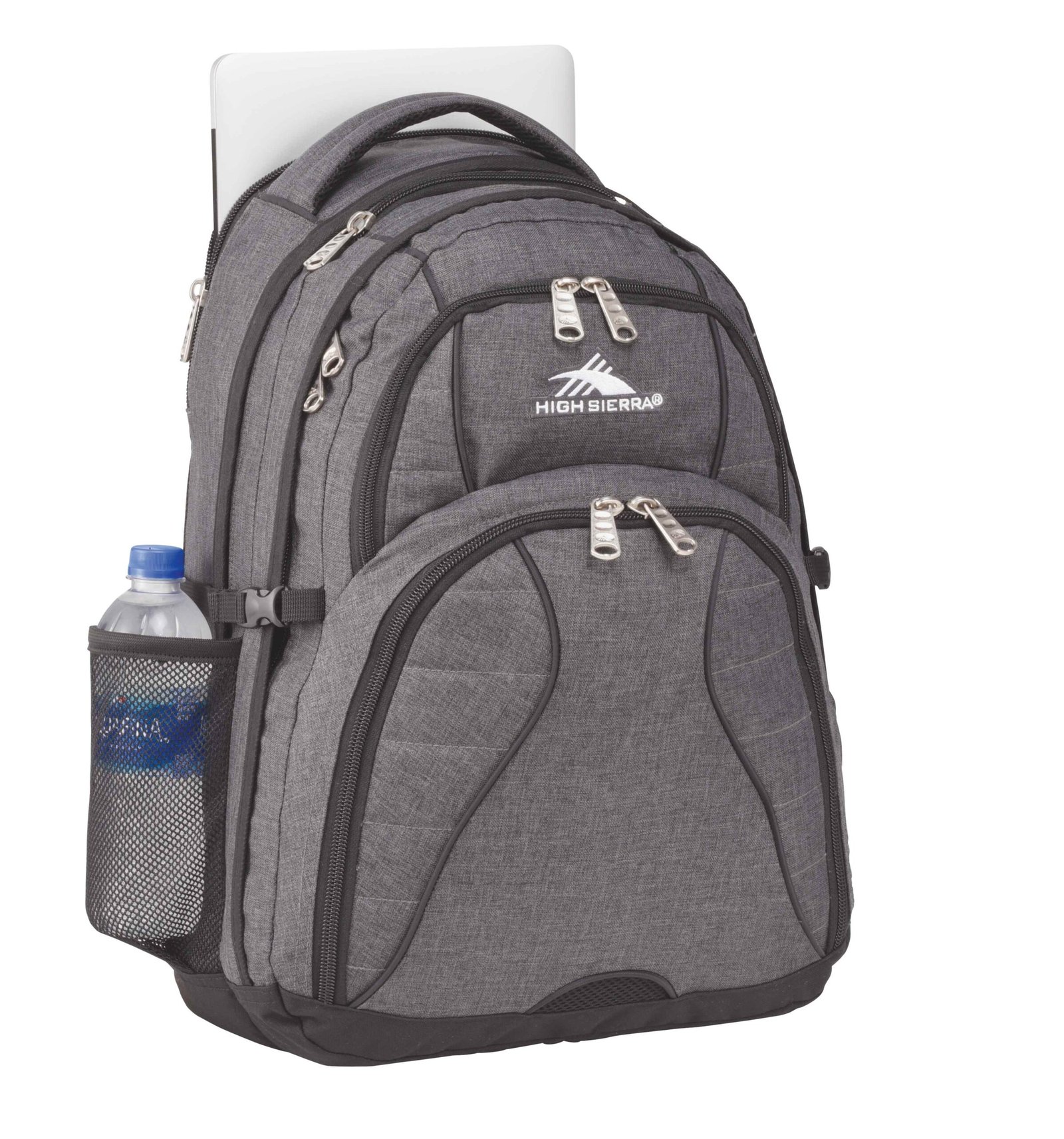 The High Sierra Swerve 17” Computer Backpack has a padded interior computer sleeve that holds most laptops up to 17”. It features an organizer compartment with multiple pockets, a zippered mesh pocket with a key fob, and a pocket for your smartphone. Additionally, its side mesh pockets can accommodate water bottles of varying sizes. The Swerve’s unique S-shaped Vapel mesh Airflow padded shoulder straps offer comfortable wear and feature thumb-ring pulls plus a cell phone pocket. Key Features Material: 600D PolyCanvas 4 compartments to provide ample storage Dedicated laptop compartment fits most computers up to 17” Built-in organizer keeps your essentials neatly arranged Mesh water bottle pockets and media pocket included Comfortable padded shoulder straps