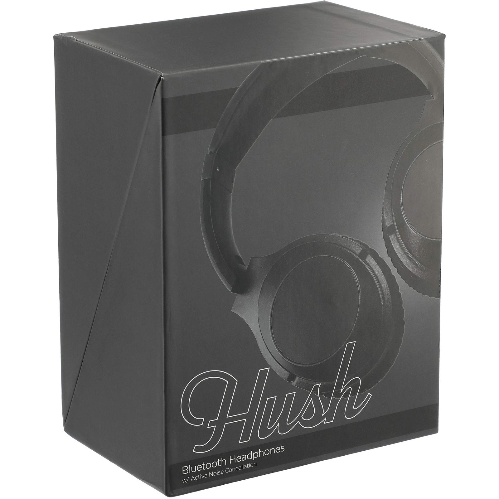 Become immersed in your music with the Hush Active Noise Cancellation Bluetooth Headphones. These headphones deliver premium stereo sound up to 15 hours at max volume. When the active noise cancellation is turned on it will block out up to 20-23db of sound. Allowing you to enjoy your long flight, train ride, or day in the office without any disruptions and in comfort with the memory foam earpads. The built-in music controls and microphone allow you to control your audio and answer a call without reaching for your phone. With a collapsible and flexible design, the headphones can be carried in the provided woven pouch or around your neck. Music can be enjoyed through Bluetooth or with the provided 20” 3.5mm Aux Cable. Playback time at max volume with ANC On: 10hrs. Charging Time: 2hrs Bluetooth Version 5.0. Micro USB charging cable provided. Bluetooth working range is 10 meters (33 feet).