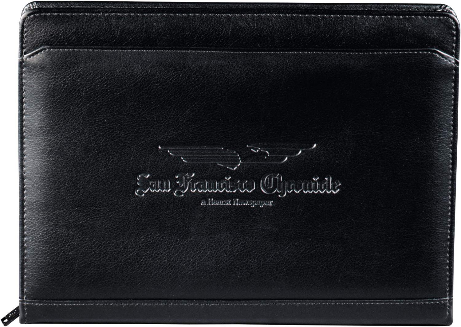 The Manchester Zippered Padfolio with FSC® Mix Paper is made from pebble grain UltraHyde materials and has a zippered closure to protect your belongings. It includes a built-in solar calculator, multiple file pockets, and an accordion-style business card file. Additional features of this thoughtfully designed padfolio include an elastic pen loop, a front document pocket, and a card holder that conveniently doubles as a USB holder for flash memory devices. It even includes a refillable 11.0” H x 8.5” W FSC® Mix writing pad, with paper refills available to order separately (9091-01). Pen not included. Key Features Material: Pebble grain UltraHyde Zips shut to keep your items safe Integrated solar calculator Multiple storage pockets Card holder with closure doubles as USB holder Integrated pen/stylus loop Comes with refillable writing pad