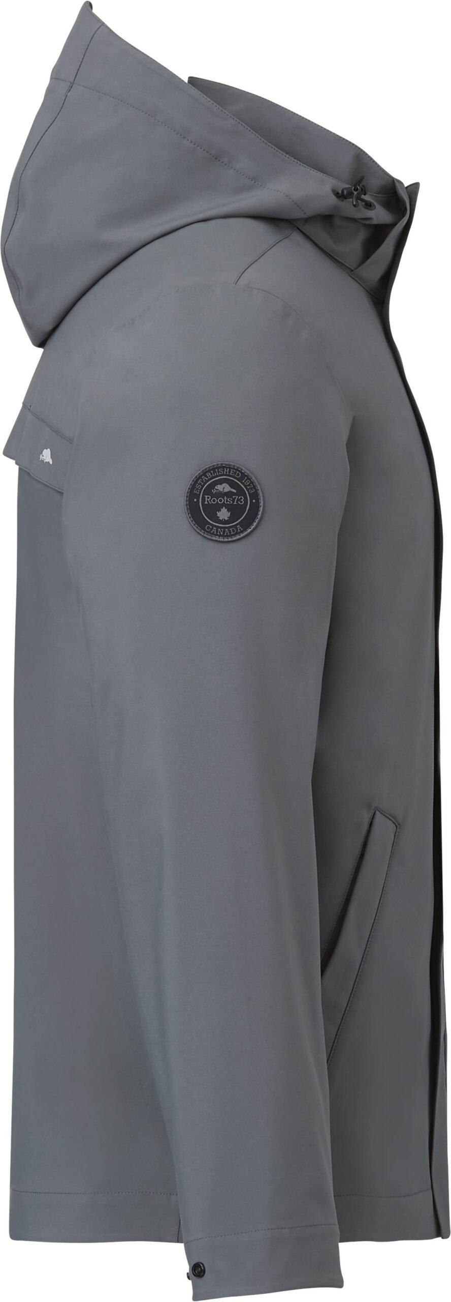 Rain is no match for the men’s Roots73™ Napanee Eco Softshell Jacket. Made with REPREVE® recycled polyester certified by the Global Recycled Standard (GRS) and featuring a breathable, waterproof membrane, this eco-friendly, critically seam-sealed softshell is a must-have for rainy weather. And with a PFC-free water-resistant coating, which means no perfluorinated chemicals were used to treat the garment, it delivers extra weather protection to keep you dry all day. The built-in back vent adds extra breathability. This versatile softshell jacket also features a detachable snap-off contour hood with elastic drawcord exterior cordlocks – all made with recycled materials. It features zippered pockets to keep valuables safe. It even features adjustable snap cuffs, articulated elbows and ergonomic sleeves for a better fit. As a bonus, it comes in a fully biodegradable polybag!