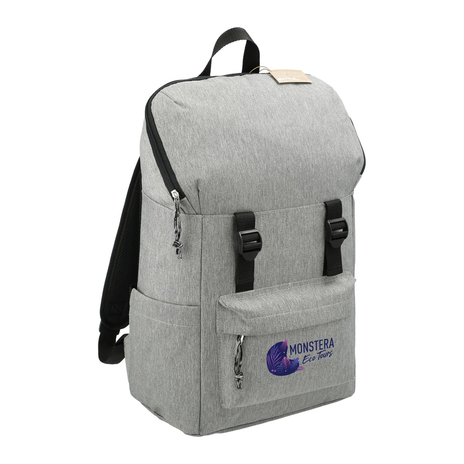 The Merchant & Craft Revive 15″ Computer Rucksack features 600D rPET material made from recycled water bottles. It features a 15″ padded laptop sleeve in its large, zippered main compartment. This bag includes a side water bottle pocket and front zippered front pocket. The rucksack also has padded, adjustable shoulder straps for comfortable wear and transportation. Through a partnership with 1% For The Planet, one percent of sales of this product will be donated to nonprofit groups that are dedicated to protecting the environment.