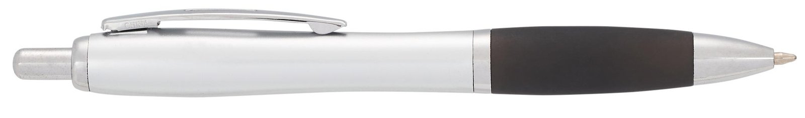 The Nash Ballpoint Pen features a click-action retractable ballpoint with a black ink cartridge. The barrel features a comfortable soft grip, available in multiple colors. Soft grip not compatible with solid silver. Key Features Material: Plastic Multiple colors available Click-action retractable ballpoint Black ink cartridge Soft grip barrel in multiple colors (except solid silver)