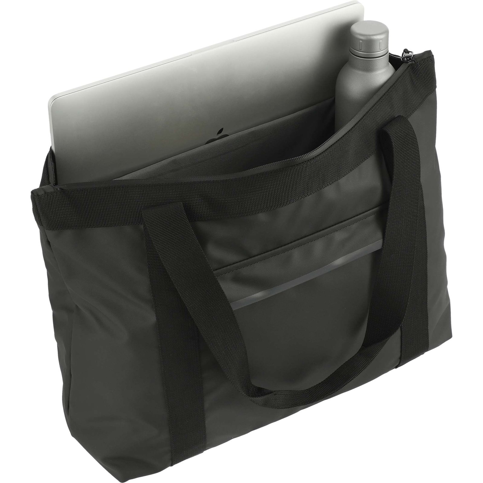 The NBN Recycled All-Weather Tote provides water-resistant protection for all your gear. The zippered main compartment with waterproof zipper tape keeps your contents dry and organized. Inside you’ll find a laptop sleeve and zippered interior pocket. The front zippered pocket features a rainflap as well. Through a partnership with 1% For The Planet, one percent of sales are donated to environmental nonprofits.