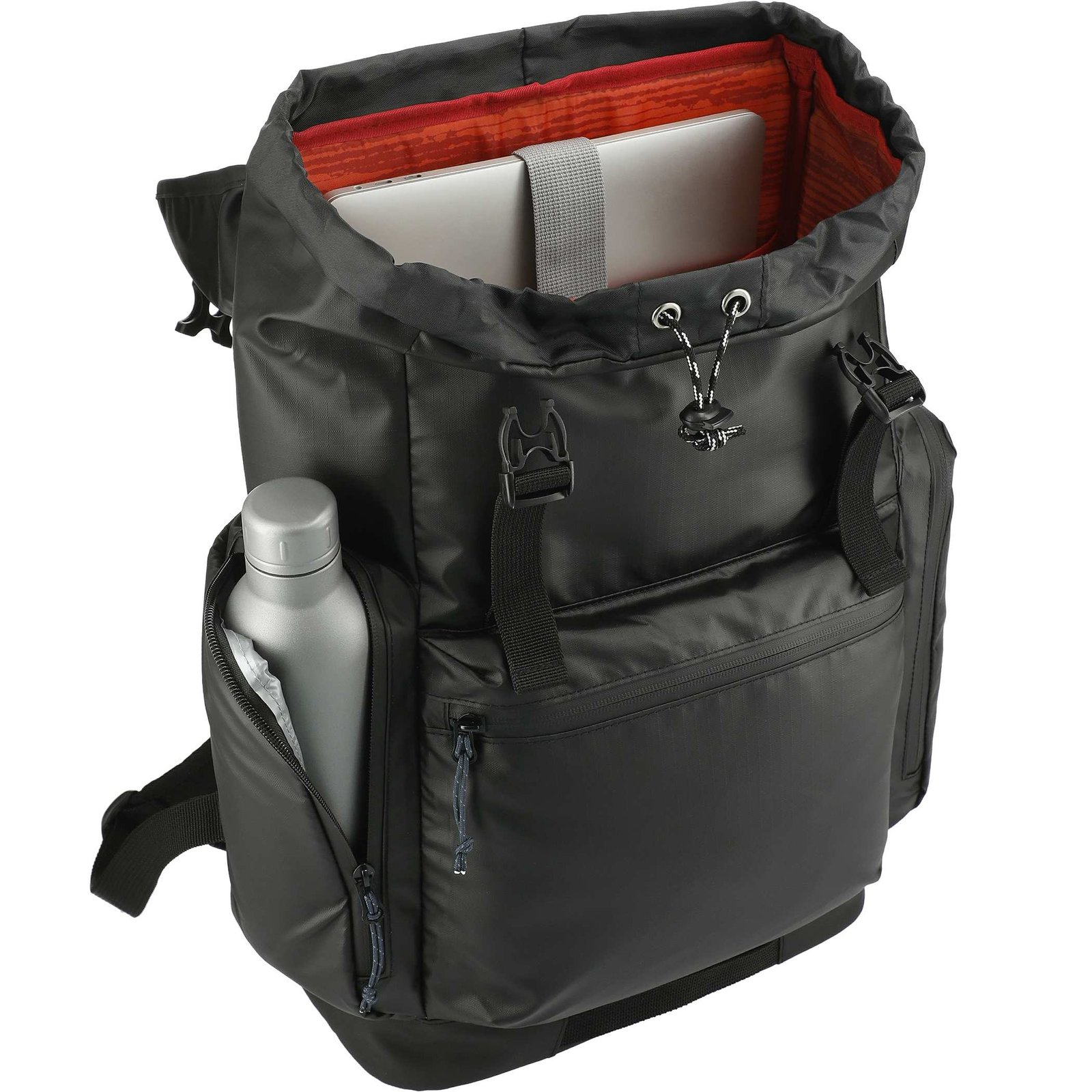 The NBN Recycled Outdoor Rucksack is the perfect bag for hiking all day or commuting to and from the office. This eco-friendly backpack features a cinch closure main compartment that buckles shut to keep your belongings safe. The main compartment features a padded laptop sleeve and zippered mesh pocket, as well as an accessory pouch to help you stay organized. Keep items handy in the zippered front pocket, which features internal organization pockets. This backpack also has two zippered side pockets: one that’s PEVA-lined to keep your water bottle cold and one that gives you easy access to your phone. Through a partnership with 1% For The Planet, one percent of sales of all EcoSmartr products are donated to environmental nonprofits.