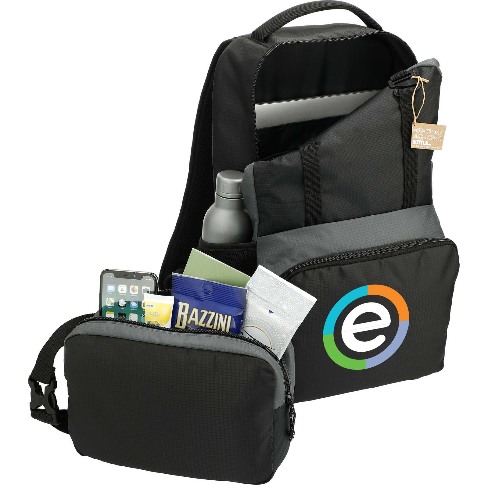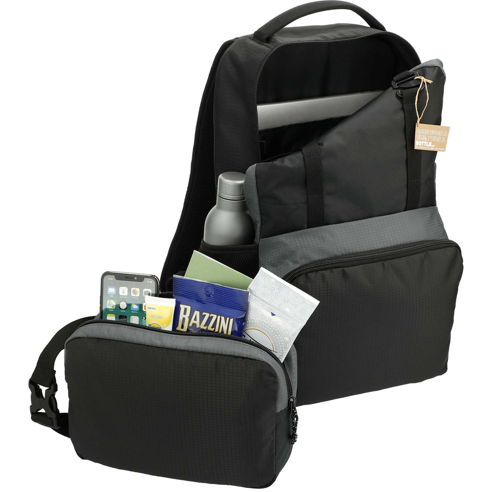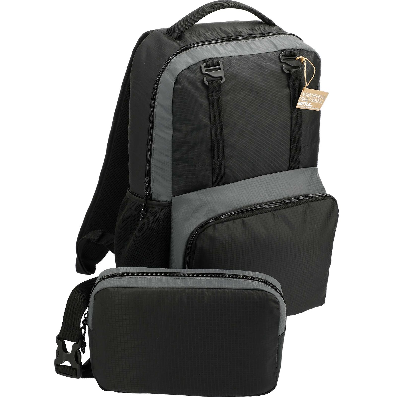 The NBN Trailhead Recycled Lightweight 30L Pack offers top-notch versatility. A removeable zippered waist pack is attached to the front of the bag for a quick grab-and-go accessory. This backpack is made with recycled materials and has a 15” laptop sleeve. The front pocket offers an organizational panel for extra storage. The on-trend grid pattern and interchangeable zipper pulls make this backpack stand out. Two mesh water bottle pockets and padded, adjustable shoulder straps make this backpack perfect for any adventure. Through a partnership with 1% For The Planet, one percent of sales of all EcoSmart® products are donated to environmental nonprofits.