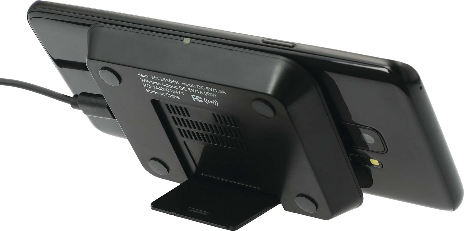 - Wireless charging stand – Charges compatible smartphones without extra cables