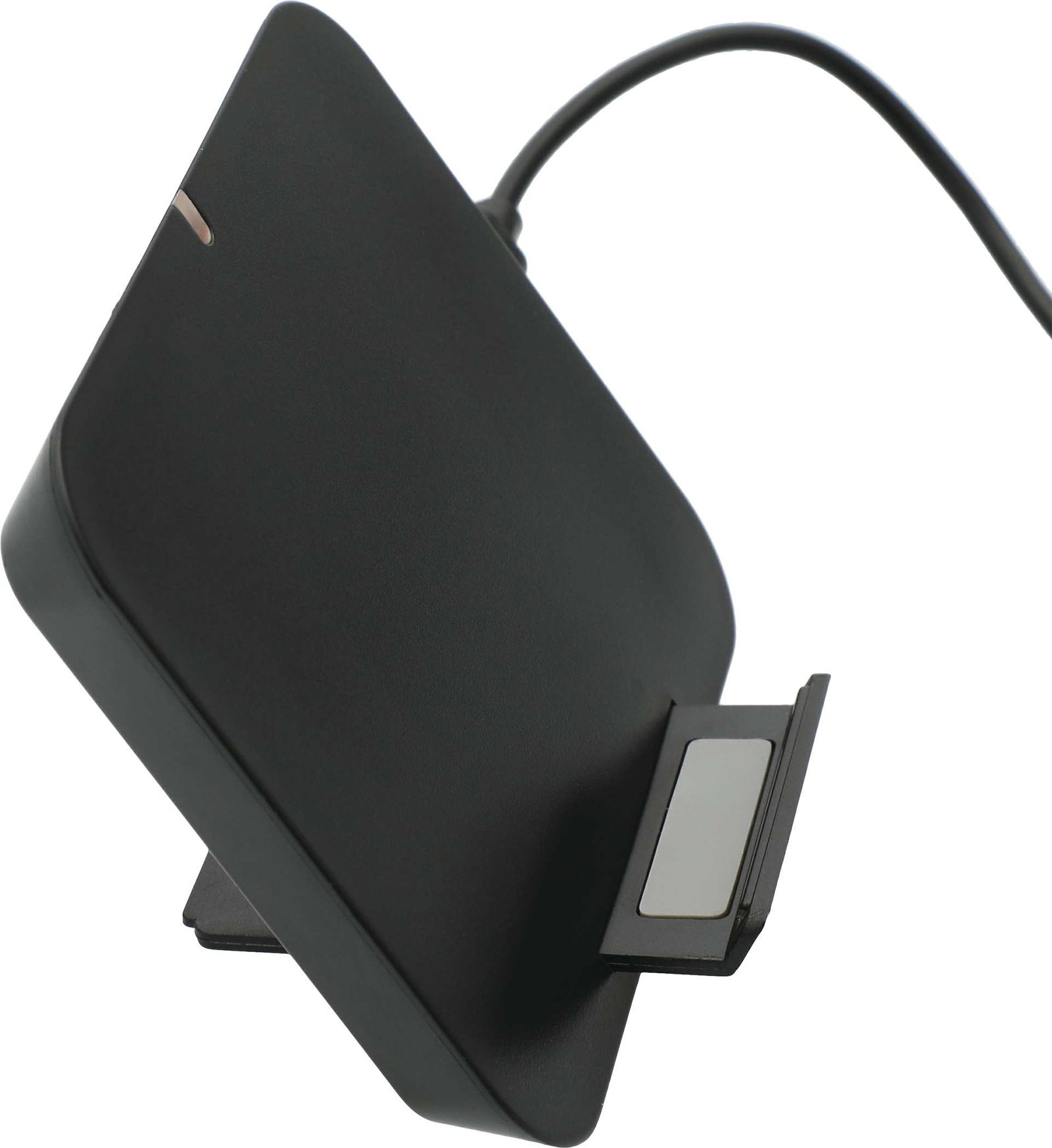 The Optic Wireless Charging Phone Stand lets you charge your smartphone effortlessly while keeping it in view. Simply place your device horizontally on the charging pad and adjust the viewing angle for comfortable, hands-free use—perfect for desks, nightstands, or video calls. For optimal performance, it’s recommended to plug the stand into a USB wall adapter. Wireless charging works through plastic phone cases that are less than 3mm thick. Devices without built-in wireless charging capability can still be charged by using an external wireless charging receiver or compatible receiver case. Key Features Wireless charging stand – Charges compatible smartphones without extra cables Adjustable viewing angle – Keeps your phone visible while charging Horizontal charging position – Ideal for video calls, streaming, or desk use Case compatibility – Works through plastic phone cases under 3mm thick Receiver compatible – Can charge non-wireless phones with an external receiver or receiver case Recommended power source – Use with a USB wall adapter for best performance