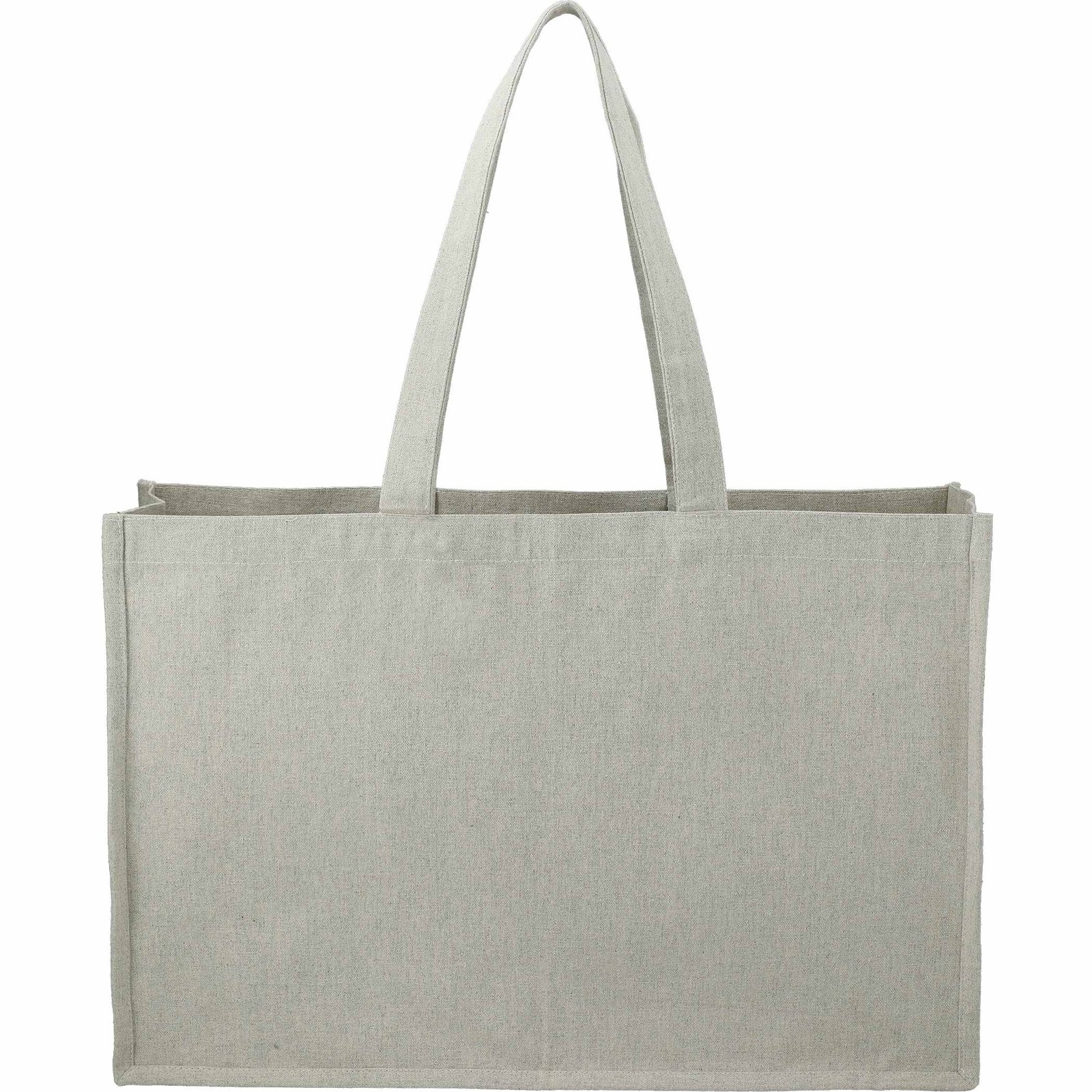The Repose 10oz Recycled Cotton Shoulder Tote is made from pre-consumer recycled cotton and features a large open main compartment and sturdy double handles. Through a partnership with 1% For The Planet, one percent of sales of all EcoSmart® products will be donated to nonprofits dedicated to protecting the planet. Key Features Material: 10 oz Recycled cotton Open main compartment Sturdy double handles Size: 14.50 H x 22.00 W x 5.50 D