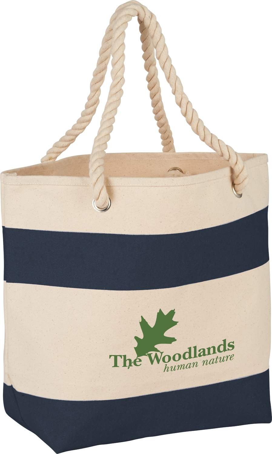 The Rope Handle 16oz Cotton Canvas Tote has an open main cotton compartment with a colored stripe accent. Conveniently carry the tote with 10″ rope handles. This tote is available in multiple colors and makes a perfect, reusable alternative to plastic bags for shopping. Key Features Material: 16 oz. Cotton Canvas Open main compartment Colored stripe accent 10″ rope handles Available in a variety of colors