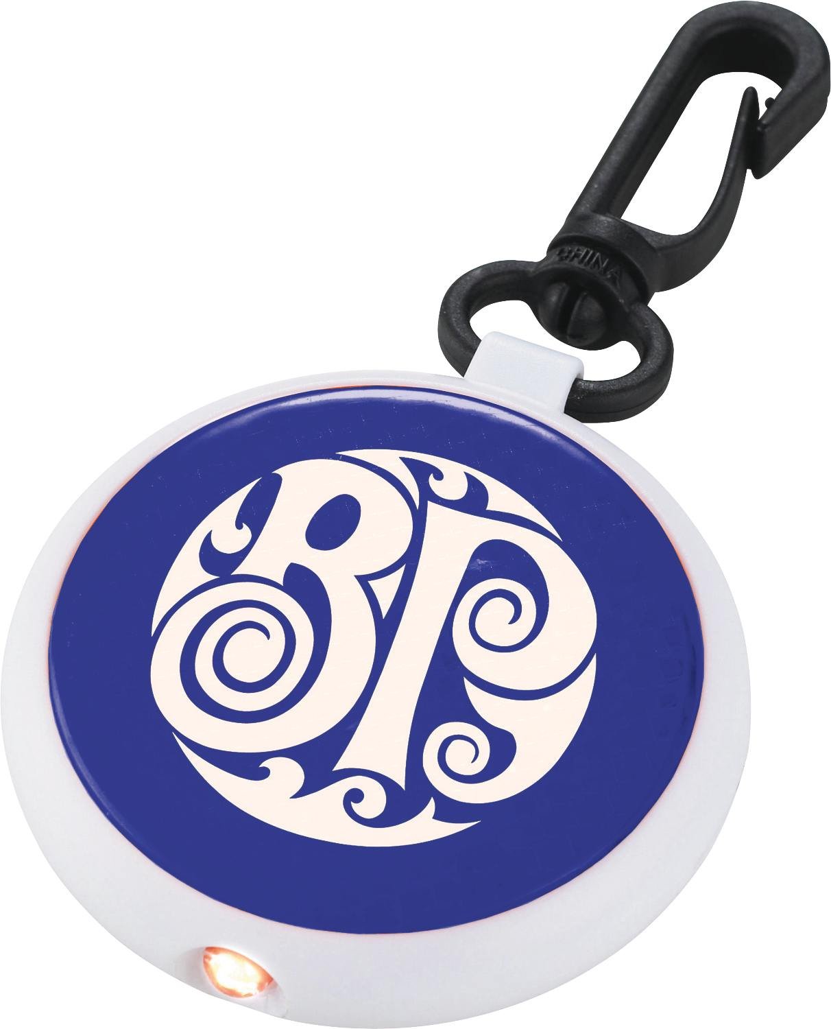 The Round Reflector Light is a reflective key-light with a durable swivel hook. Its double function includes a flashing internal LED and a steady internal LED. Push the button on the back to turn the power on and off and to switch between functions.