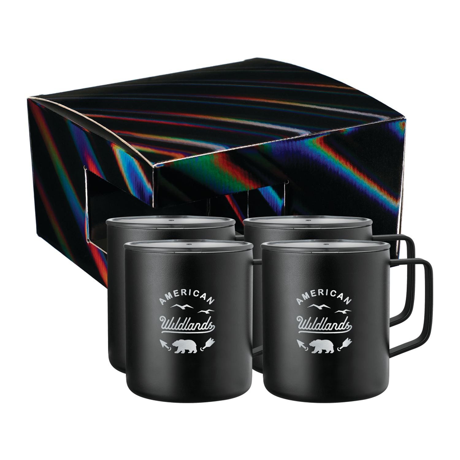 Thoughtful, stylish, and practical, this mug gift set is sure to please everyone on your shopping list. It includes four Rover Copper Vacuum Insulated Camp Mugs (1625-76), which feature double-wall stainless steel construction to keep beverages hot for 6 hours or cold for 24 hours. Each item in the Rover Camp Mug 4 in 1 Gift Set 14oz is condensation-resistant. Key Features GIft set includes 4 Rover camp mugs (14oz each) Copper vacuum insulation Rugged 18/8 grade stainless steel Condensation-free powder coating is scratch- and fade-resistant Comes with holographic gift box