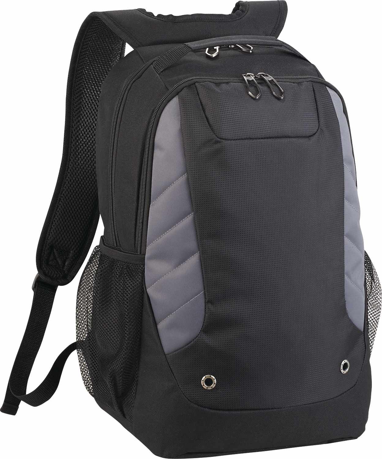 The Sanford Computer Backpack features a zippered main compartment to hold up to 15″ laptops. Store your tech accessories in the mesh slack pocket on the interior wall. This computer backpack includes a large zippered front compartment with a deluxe organizational panel, plus a front panel accented with grommet and stitched details. The Sanford Computer Backpack includes a side mesh water bottle pocket, webbing grab handle and padded, adjustable shoulder straps. Key Features Zippered main compartment holds up to 15″ laptop Mesh slash pocket for tech accessories Large zippered front compartment with deluxe organizational panel Front panel accented with grommet and stitched entails Side mesh water bottle pocket Webbing grab handle and trolley sleeve Padded, adjustable shoulder straps Custom designed zippered pullers