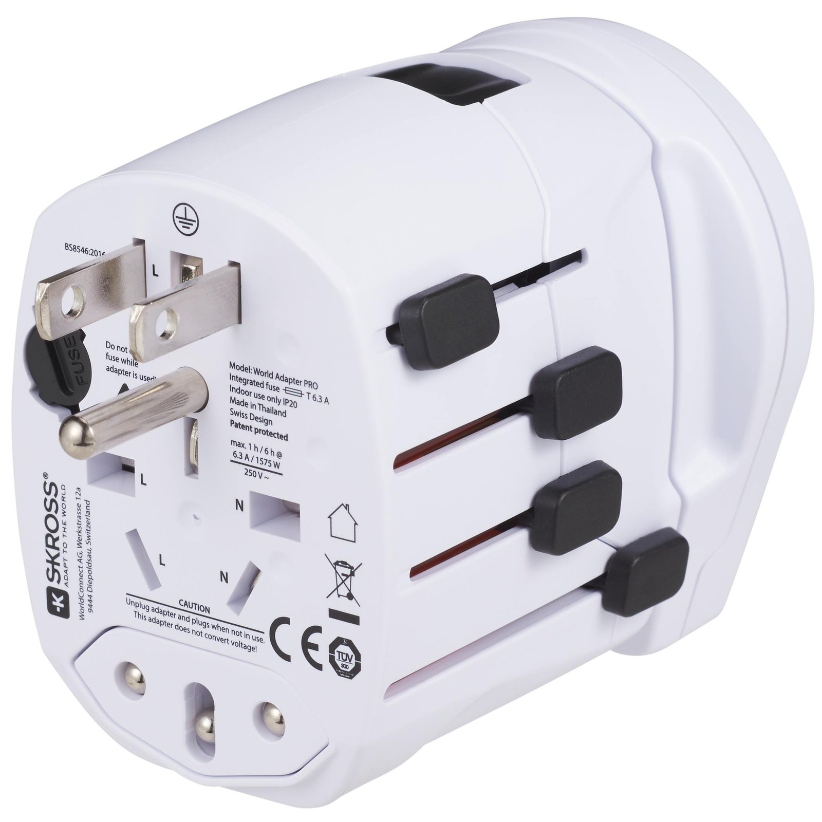 Switzerland-based SKROSS, the world’s leading manufacturer of premium travel adapters, presents its most powerful charging solution yet: the SKROSS World Travel Adapter PRO World & USB. This compact three-pole travel plug features an integrated USB charger and works in more than 150 countries, enabling you to simultaneously charge USB devices while connecting earthed devices like laptops and hair dryers — anywhere in the world. Key Features Material: Double-wall plastic construction Versatile design works in more than 150 countries 3-pole travel plug with integrated USB charger Charges iPhones, Android smartphones, and other devices Input voltage adapter of 100V-250V Maximum load of 10A USB output of 5V/2100mA Product Functions and Instructions Download the product manual to see how to use this product and the proper settings for different countries. View Manual and Compliance Docs