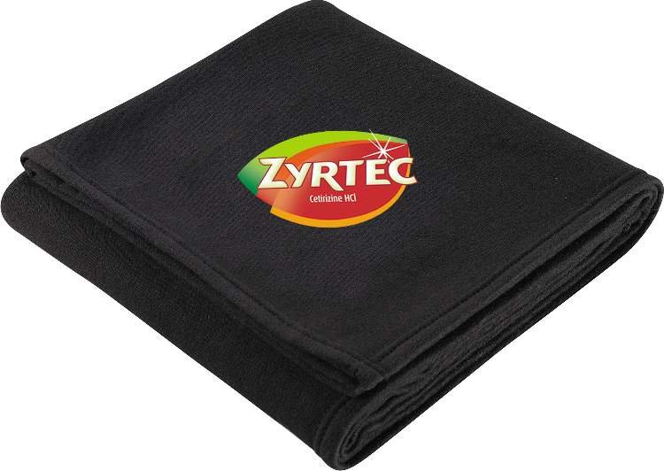 The Sweatshirt Blanket is super-soft and cozy. Made with a comfy cotton/polyester blend consisting of 80% cotton/20% polyester. Measures 50” x 60” unfolded and 12 1/2” x 12” folded. Free decoration: Run charges waived on embroidery up to 10,000 stitches. This blanket is spot clean only.